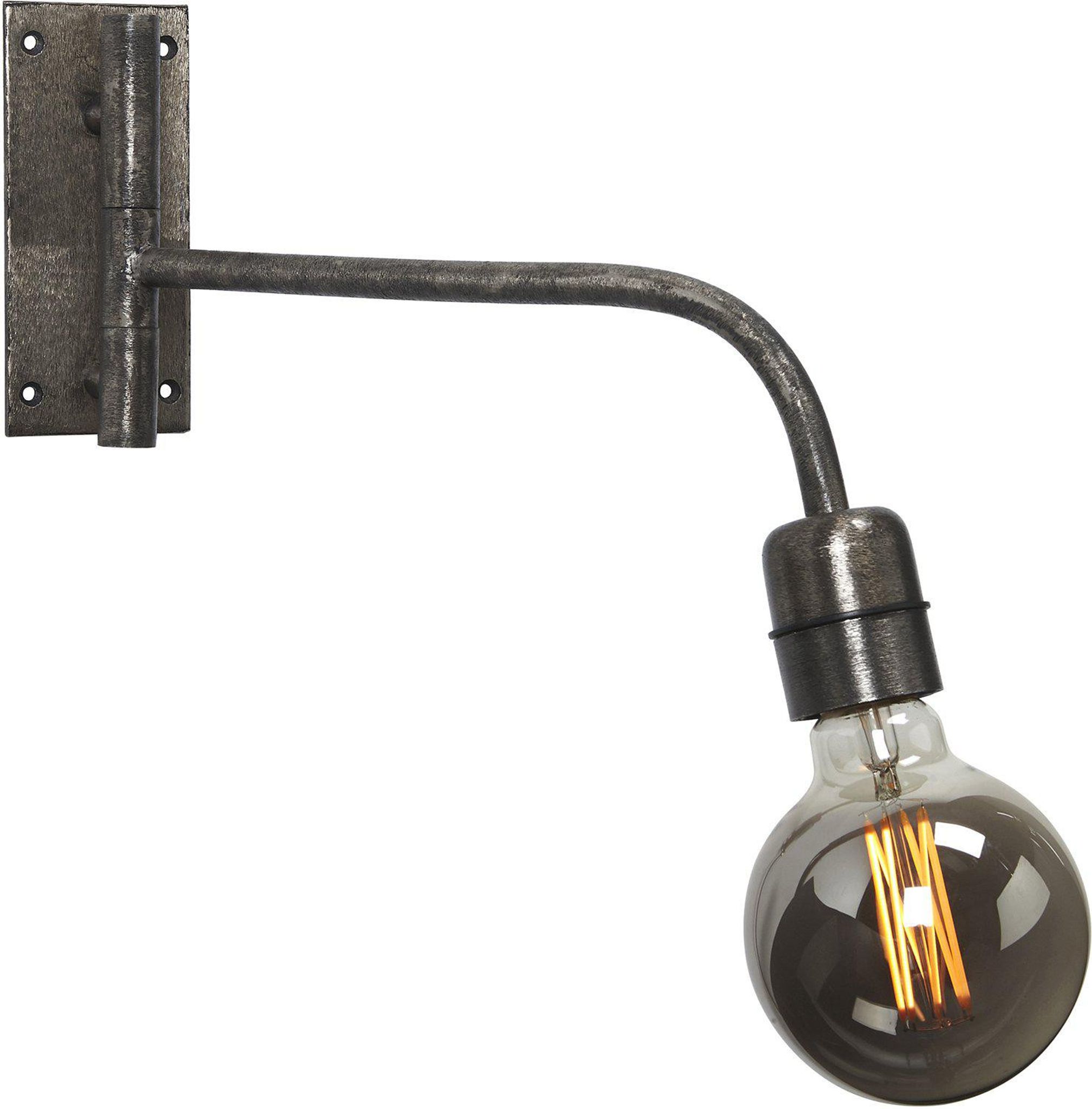 Vägglampa i metall, mått höjd 14, bredd 7 i rustik silver med E27-sockel och 1,6 m textilsladd. Snygg och praktisk, den passar i din hall eller vid sängen, funkar bra och håller länge.