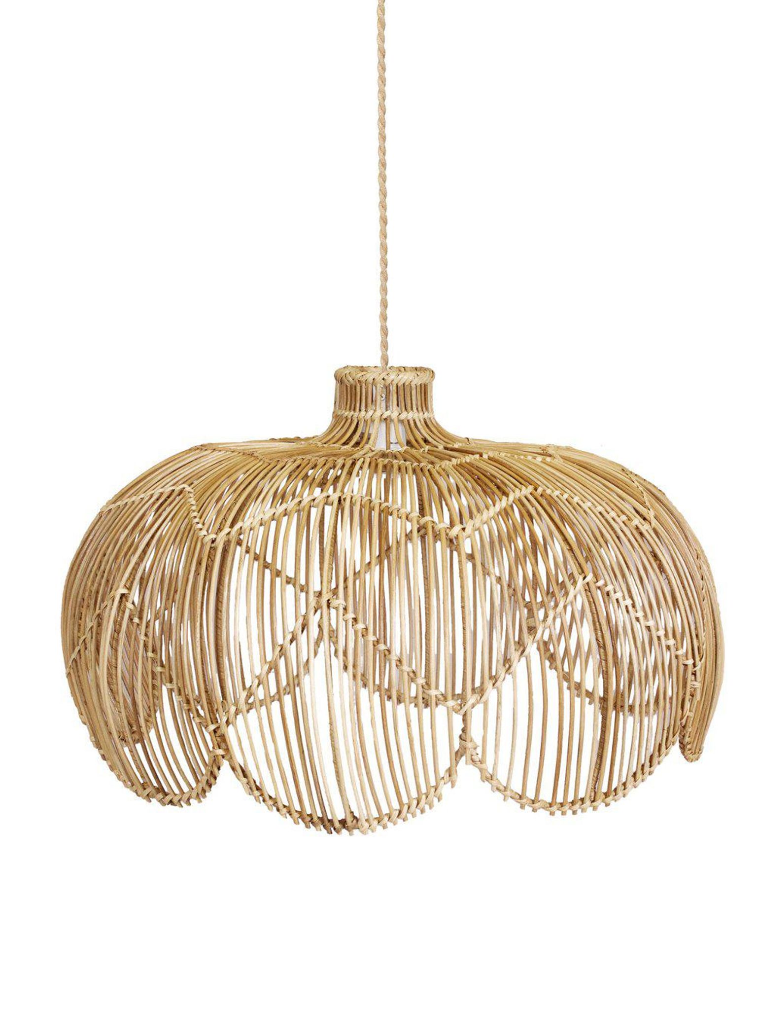 - Material: Handflätad naturrotting, vilket gör varje lampa unik.