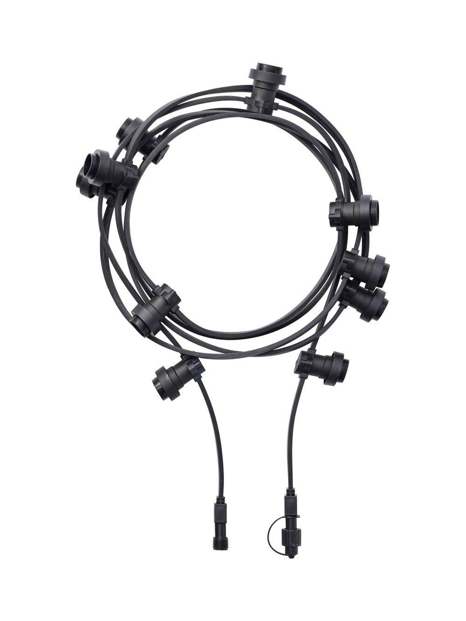 Bright ljusslinga 4,9 m i svart gummi med IP44-skydd och max 15W lamphållare. Den passar som utbyggnad för utomhusbruk och funkar flexibelt; du har en snygg, praktisk, bra ljusslinga som håller länge.