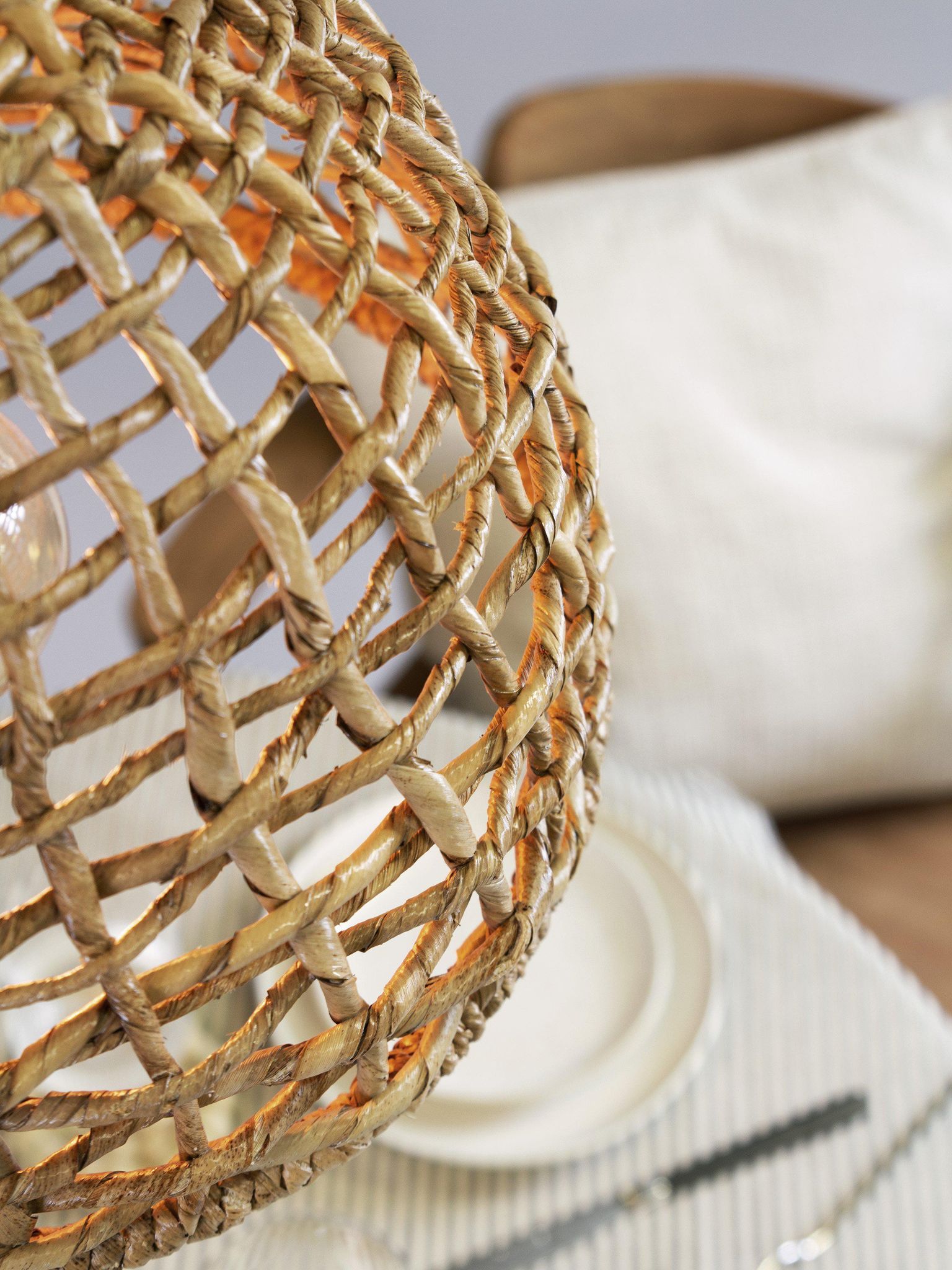 Natural Cebu taklampa 37cm är en handvävd pendellampa som tar in en naturkänsla i ditt hem. Den genomskinliga skärmen sprider ett mjukt ljus och passar som taklampa över matbordet, i uterum eller andra inomhusdelar där du vill ha varm stämning — även i skyddade utomhusmiljöer som växthus eller inglasade verandor. Använd den som pendellampa eller hänglampa för riktad belysning.