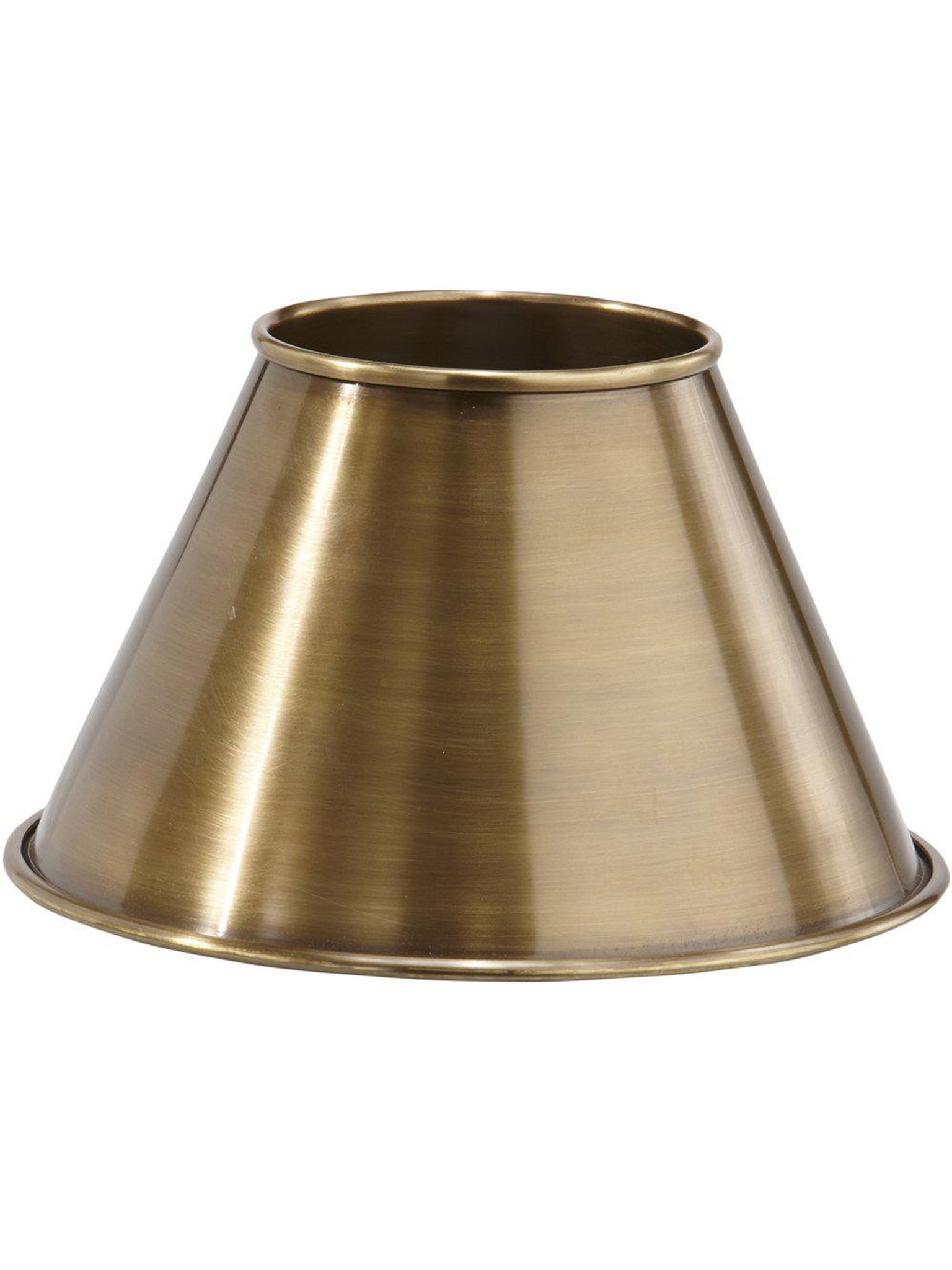 Metallskärm i antikmässing, 15 cm hög och 22 cm bred, med E27-ringfäste. En snygg, praktisk lösning som passar i ditt hem, funkar bra och håller länge.