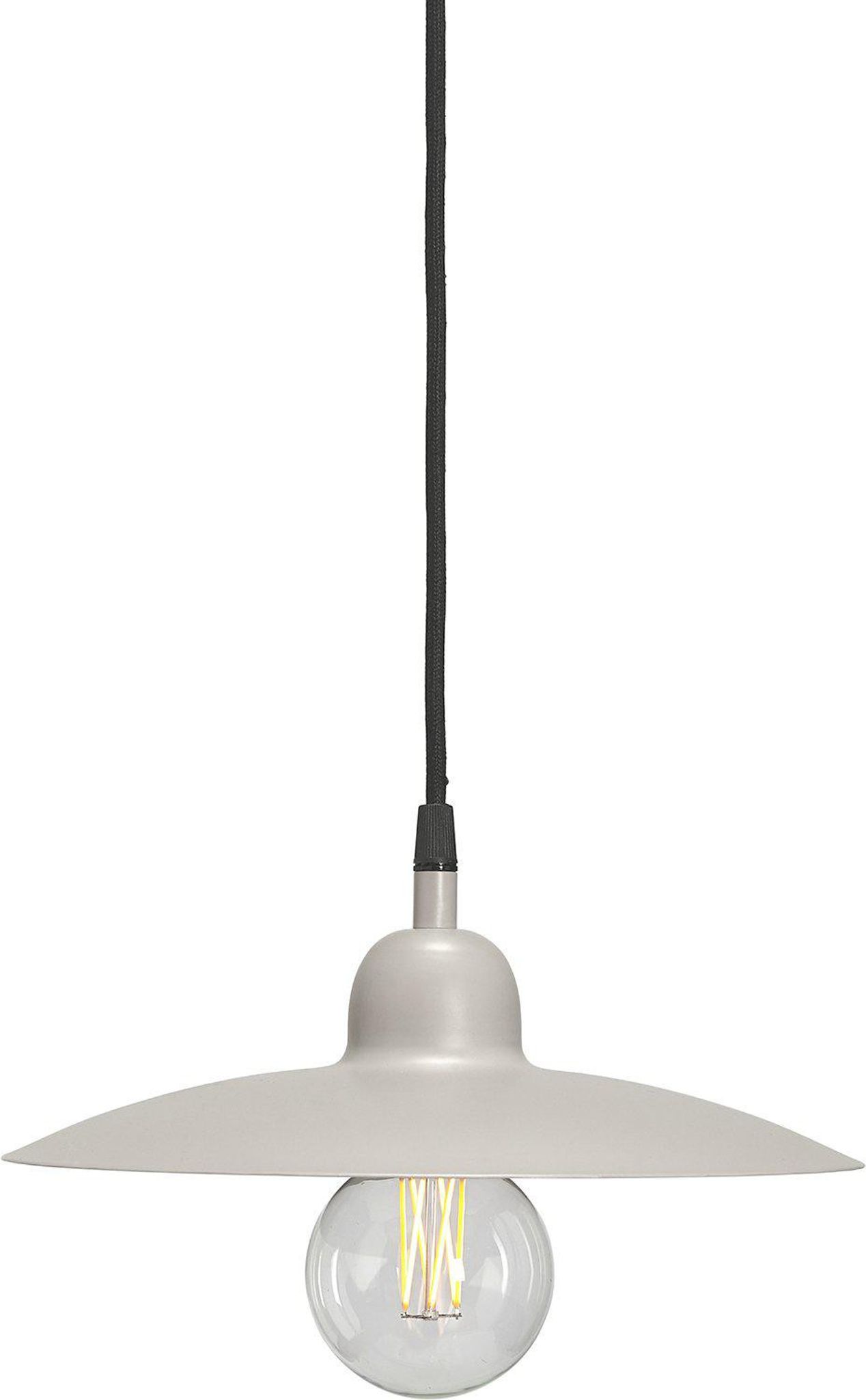 Beige Como tak-/pendellampa i metall, bredd 28 och höjd 13 med E27-sockel, 3,5 meter textilsladd och matt finish. Den lilla pendellampan passar i ditt hem och är snygg, praktisk, funkar bra och håller länge.