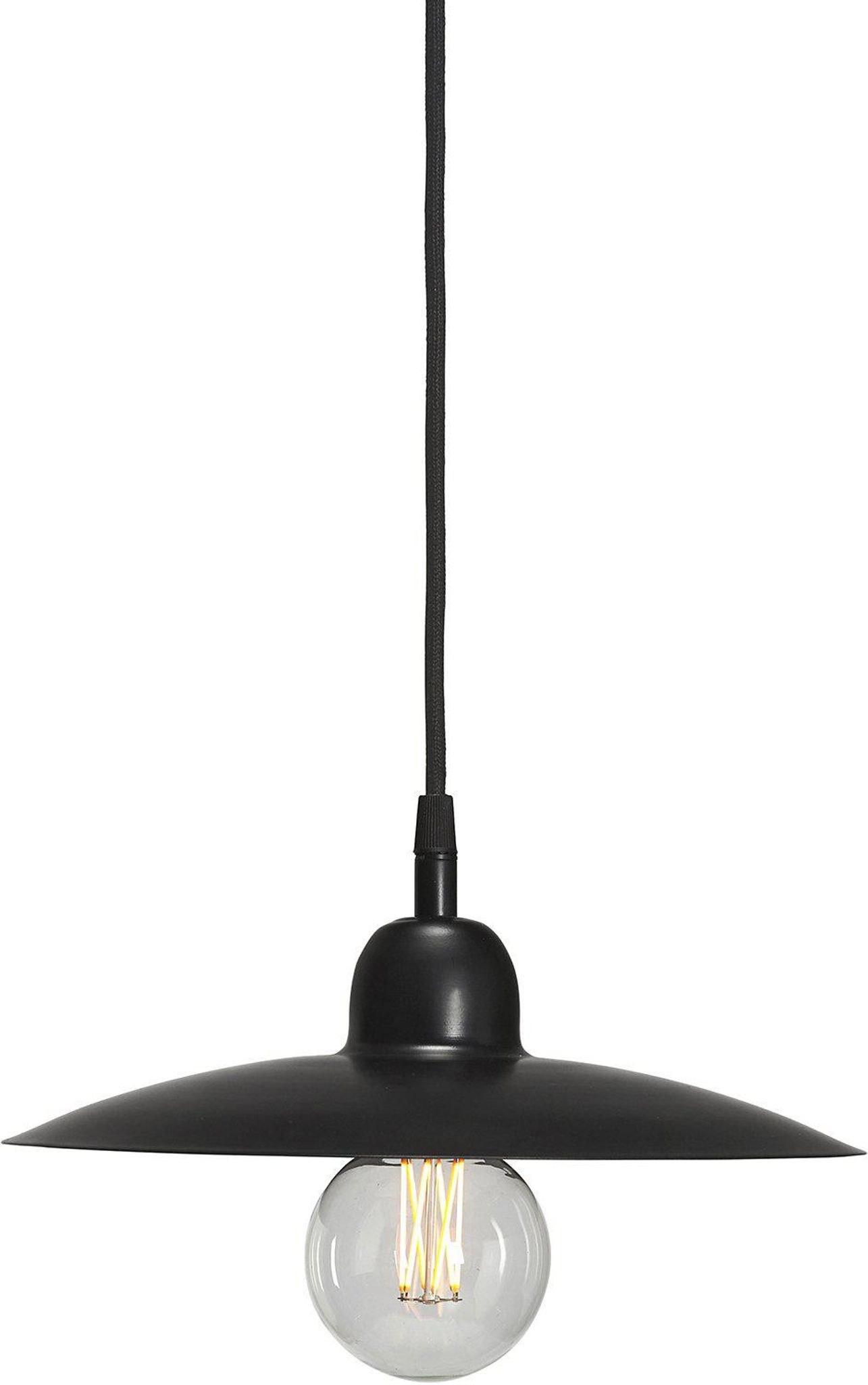 Como takfönsterlampa 13x28 i metall med svart finish, textilsladd 350 och E27-sockel. Den passar i kök eller hall, funkar som liten pendel, är snygg, praktisk, håller länge och är bra för ditt hem.