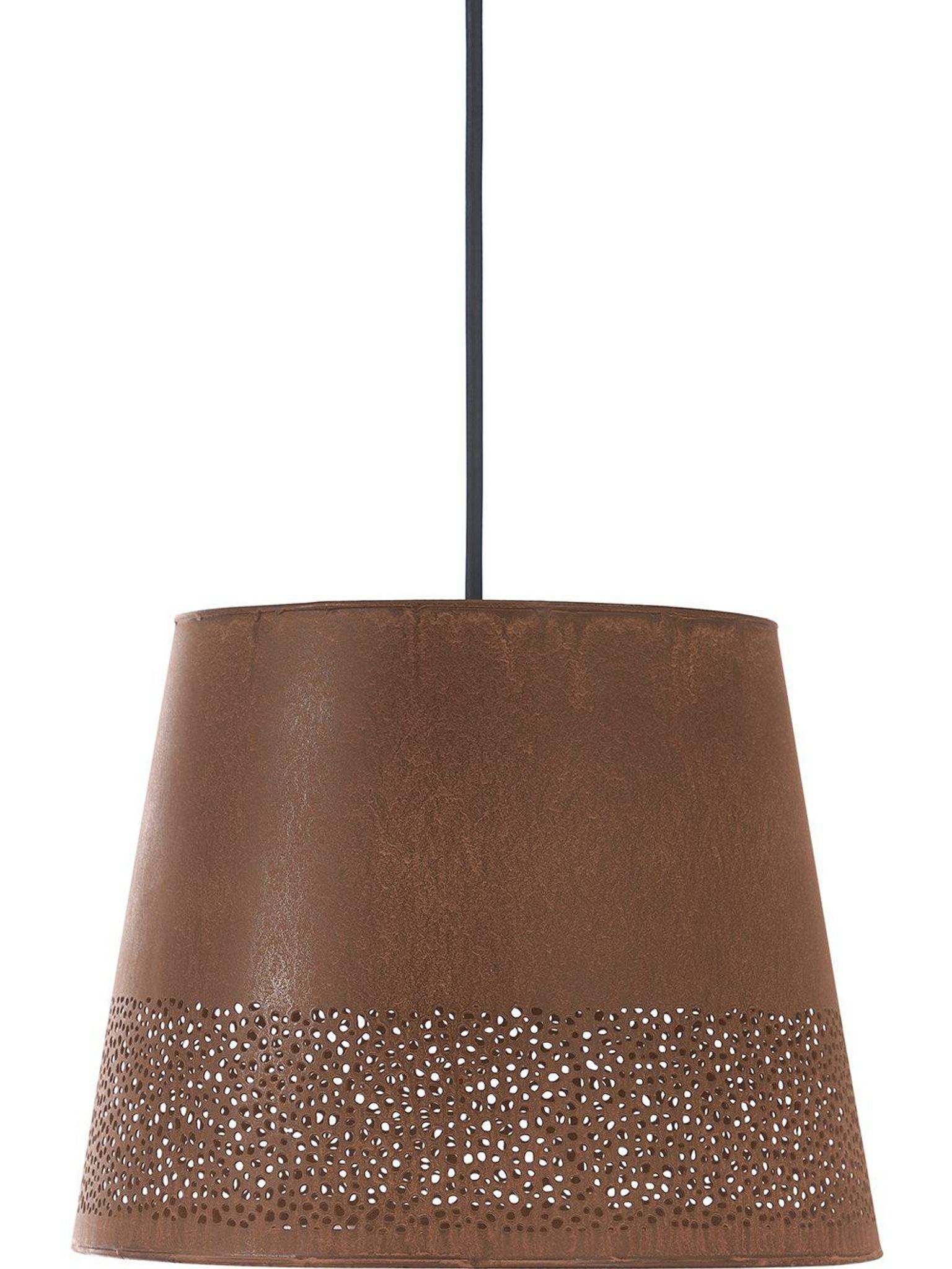 En orange metalltakskärm för utomhusbelysning som ger varmt, dekorativt ljus över din uteplats eller i trädgården. Den utskurna mönstret sprider ljuset på ett sätt som skapar en inbjudande stämning vid kvällar och sammankomster utomhus.