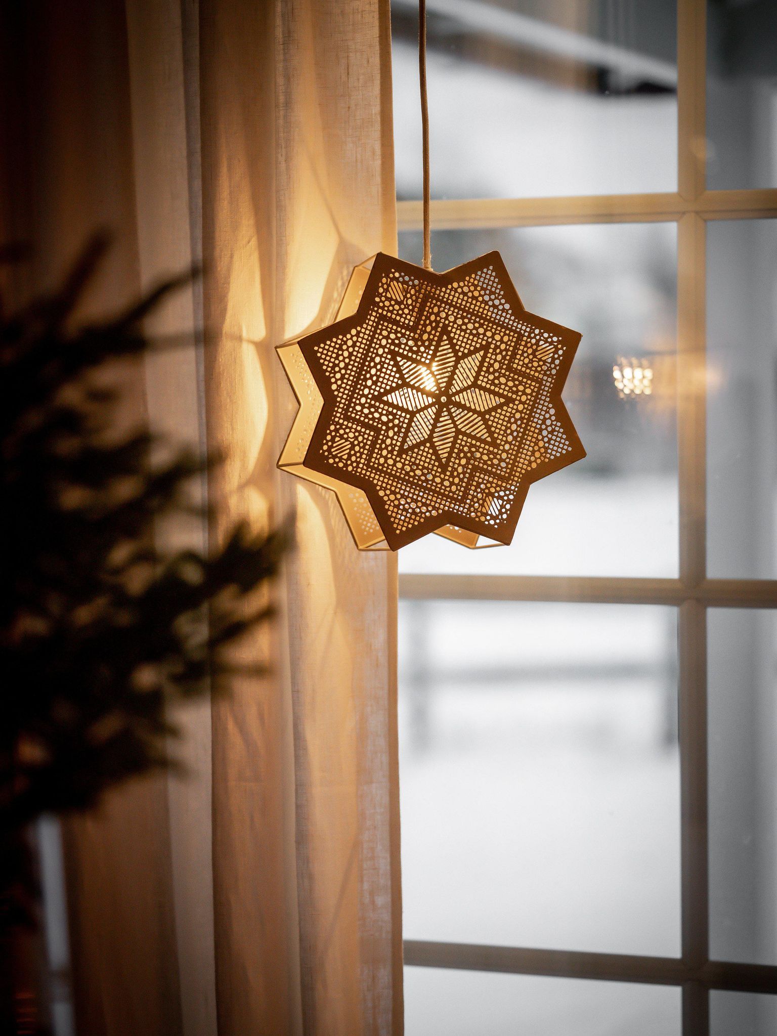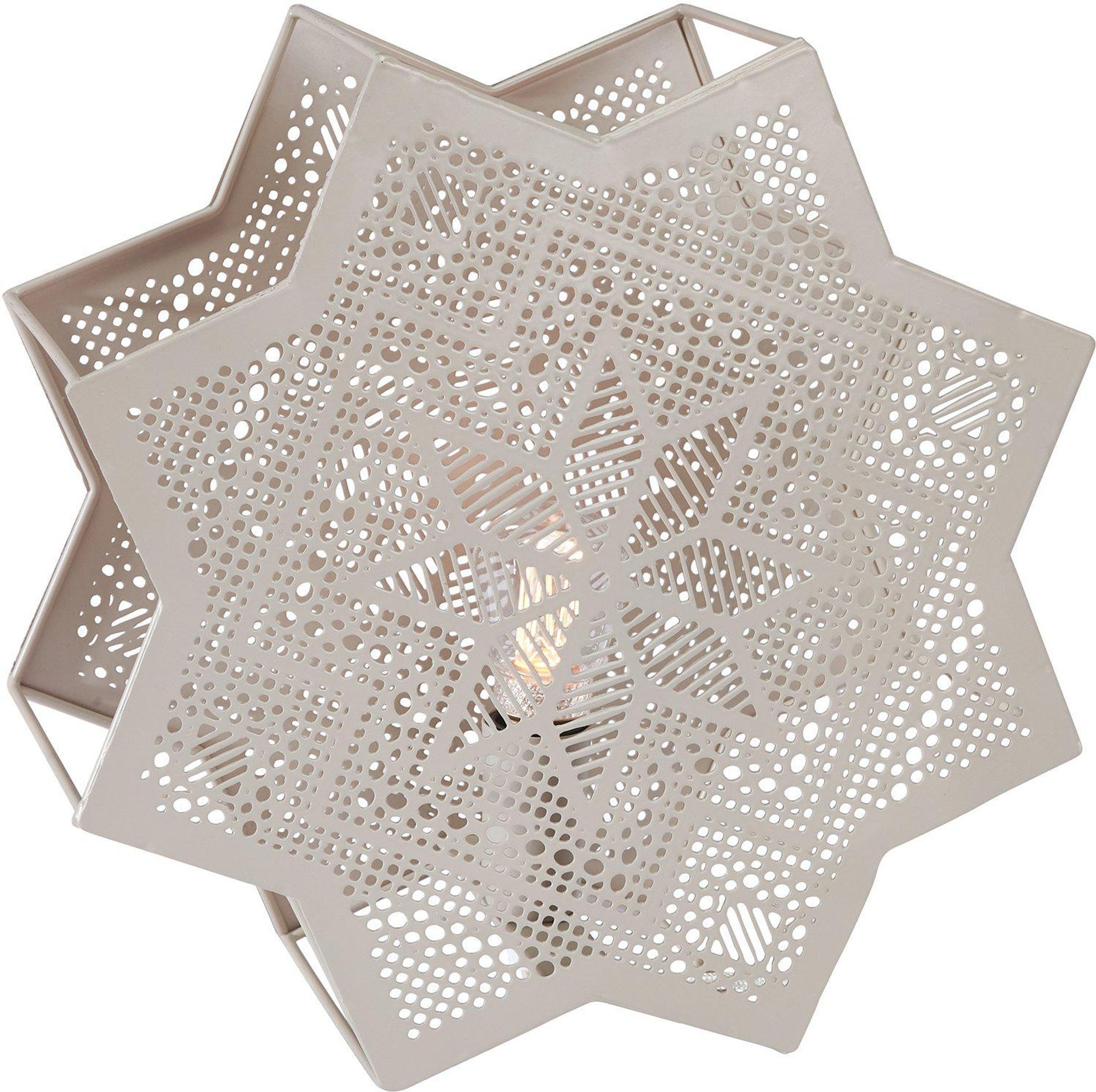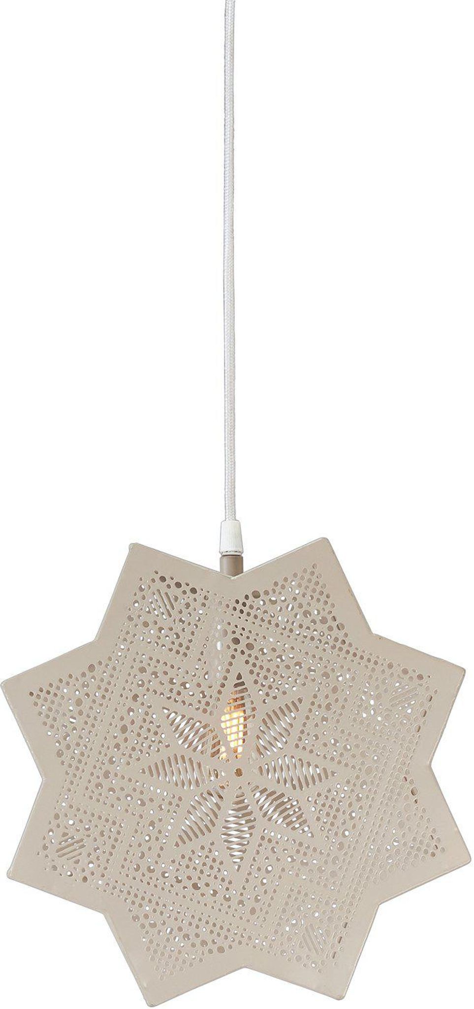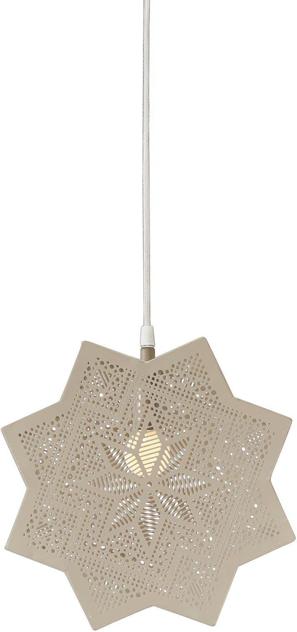 Stjärnan är gjord i metall med en beige lackering och har en design som håller länge. De utskurna detaljerna sprider ett mjukt ljus som bidrar till en varm stämning vid middagar eller i en mysig hörna under julen. Den lång sladden gör att du enkelt kan placera stjärnan där du behöver ljuset mest, och E14-sockeln ger dig friheten att välja vilken typ av lampa du vill använda för rätt ljusbild.