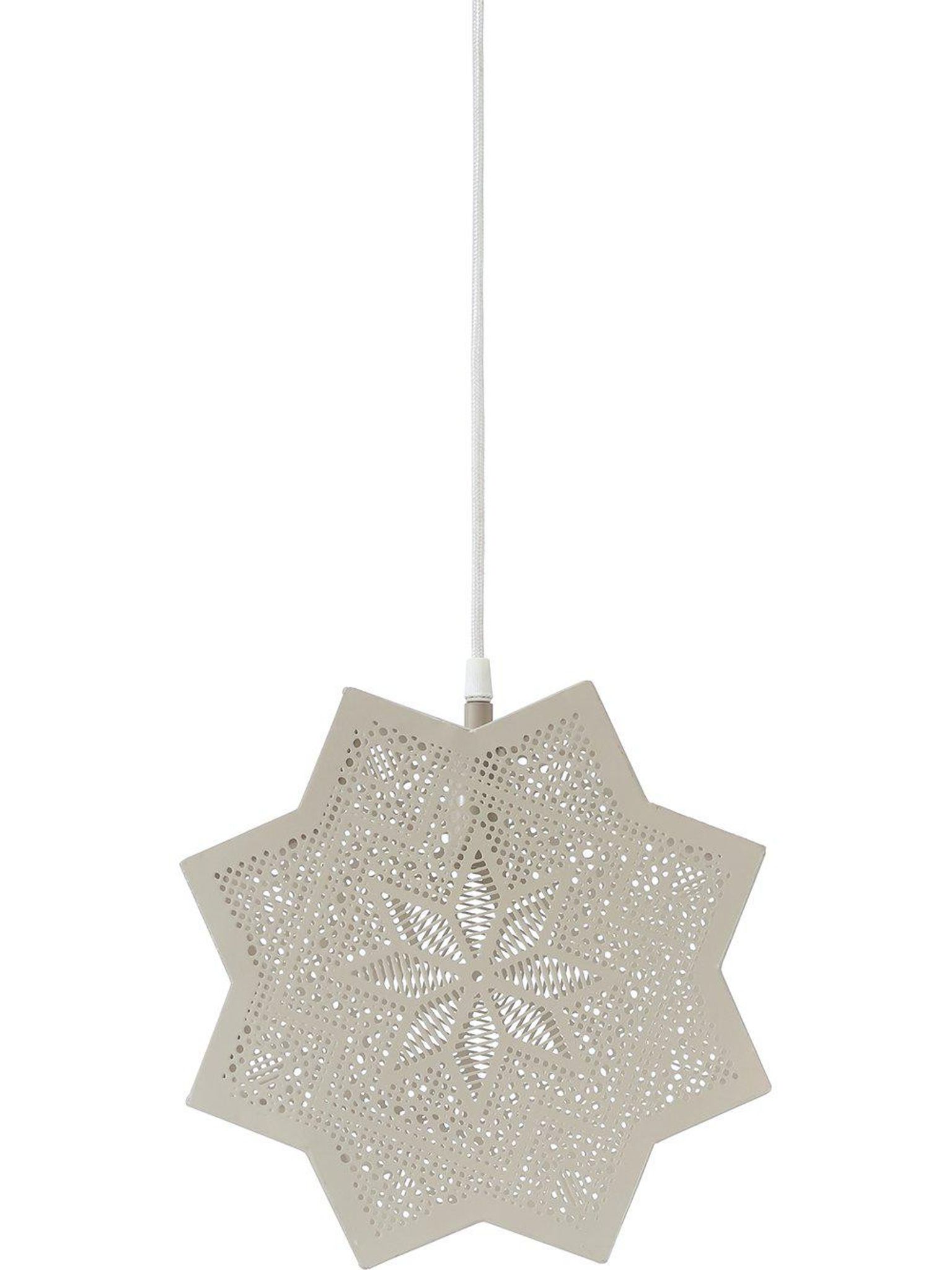 Elvira Star 28 cm hängande stjärnlampa i beige metall, snygg och praktisk. Passar din julbelysning inomhus med 3,5 m textilkabel och E14-sockel; funkar bra, håller länge, ljuskälla ingår ej.