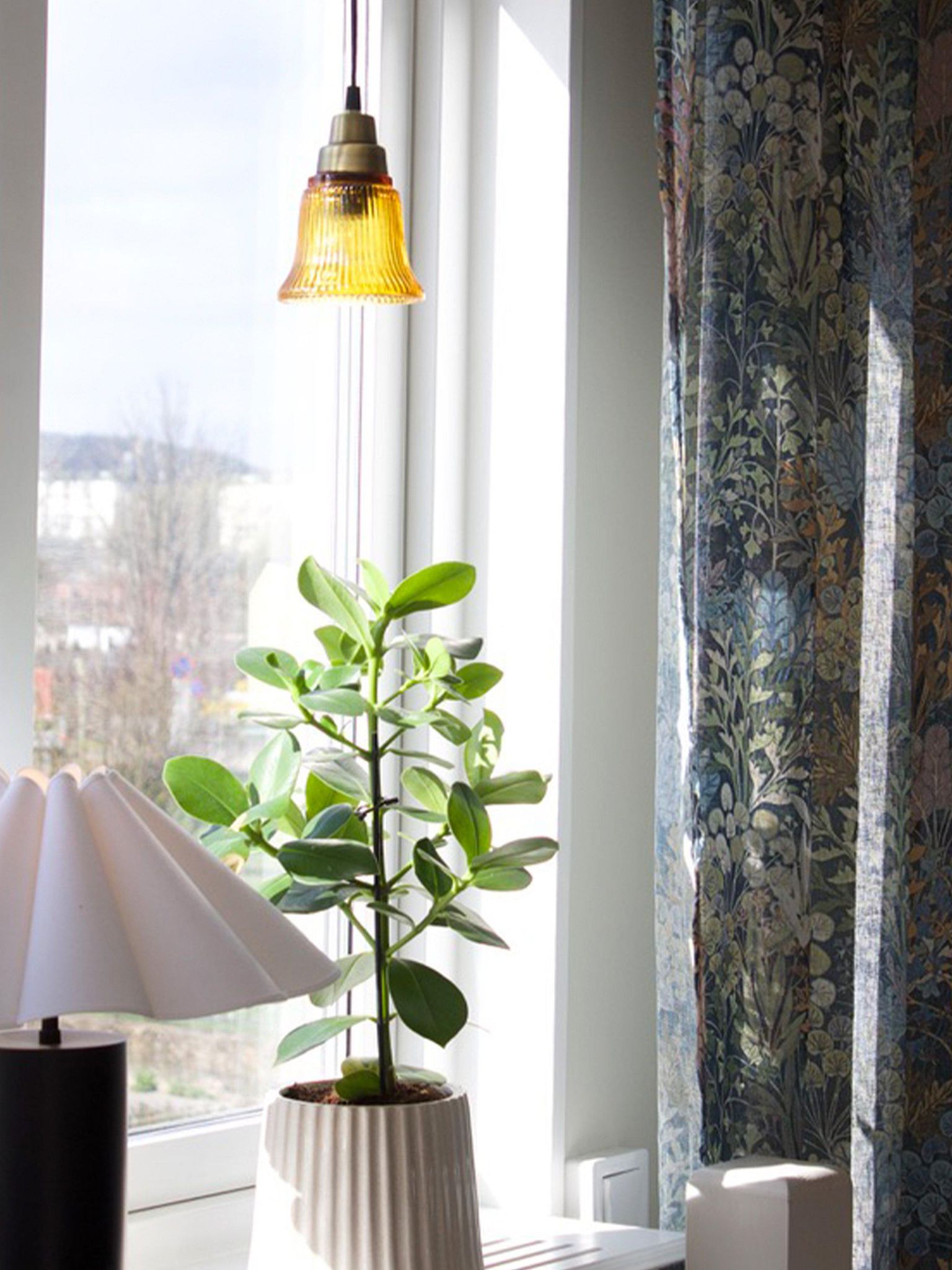 Emmi fönsterlampa i bärnsten från PR Home är en liten hängande lampa som ger varm, nedtonad belysning i fönster, på en smal fönsterbräda eller över en liten avlastningsyta. Den fungerar lika bra som liten pendellampa eller hänglampa när du vill skapa fin stämning utan att den tar plats.