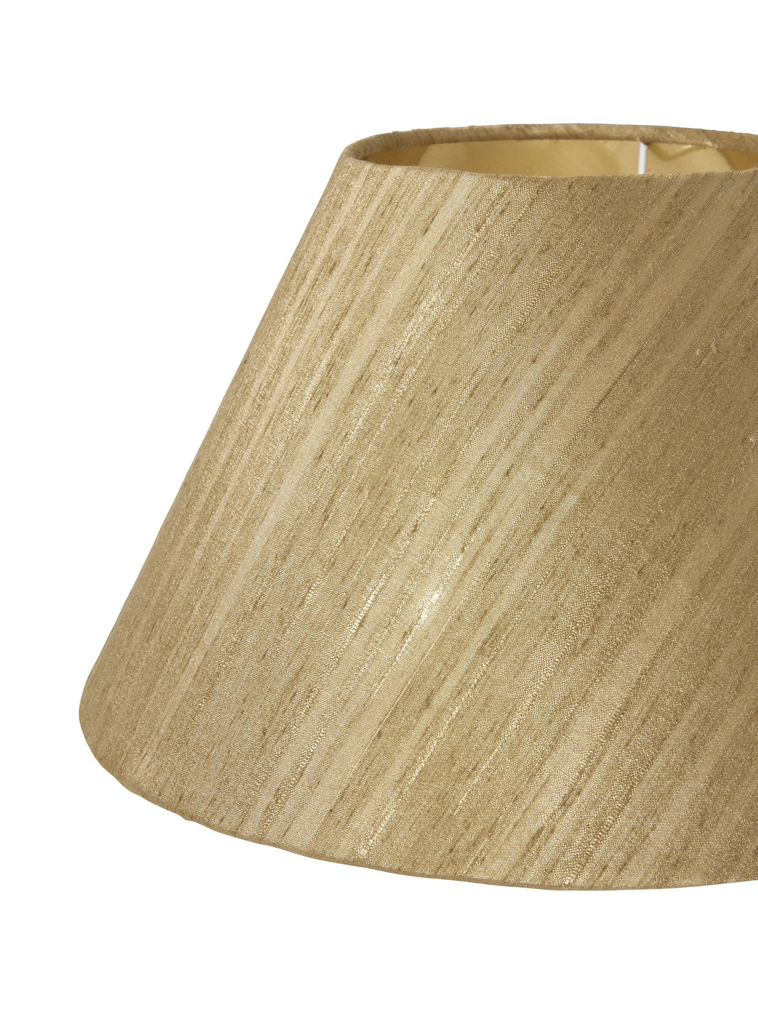 Materialet och formen gör att du får ett tydligt nedåtriktat ljus samtidigt som den guldiga insidan mjukar upp skenet. Det ger dig bättre läsljus vid soffan eller ett behagligt sken över matbordet utan att ta över rummet. Polysilke ger en jämn yta som håller länge och är lätt att matcha med annan inredning i guldtoner eller neutrala färger.