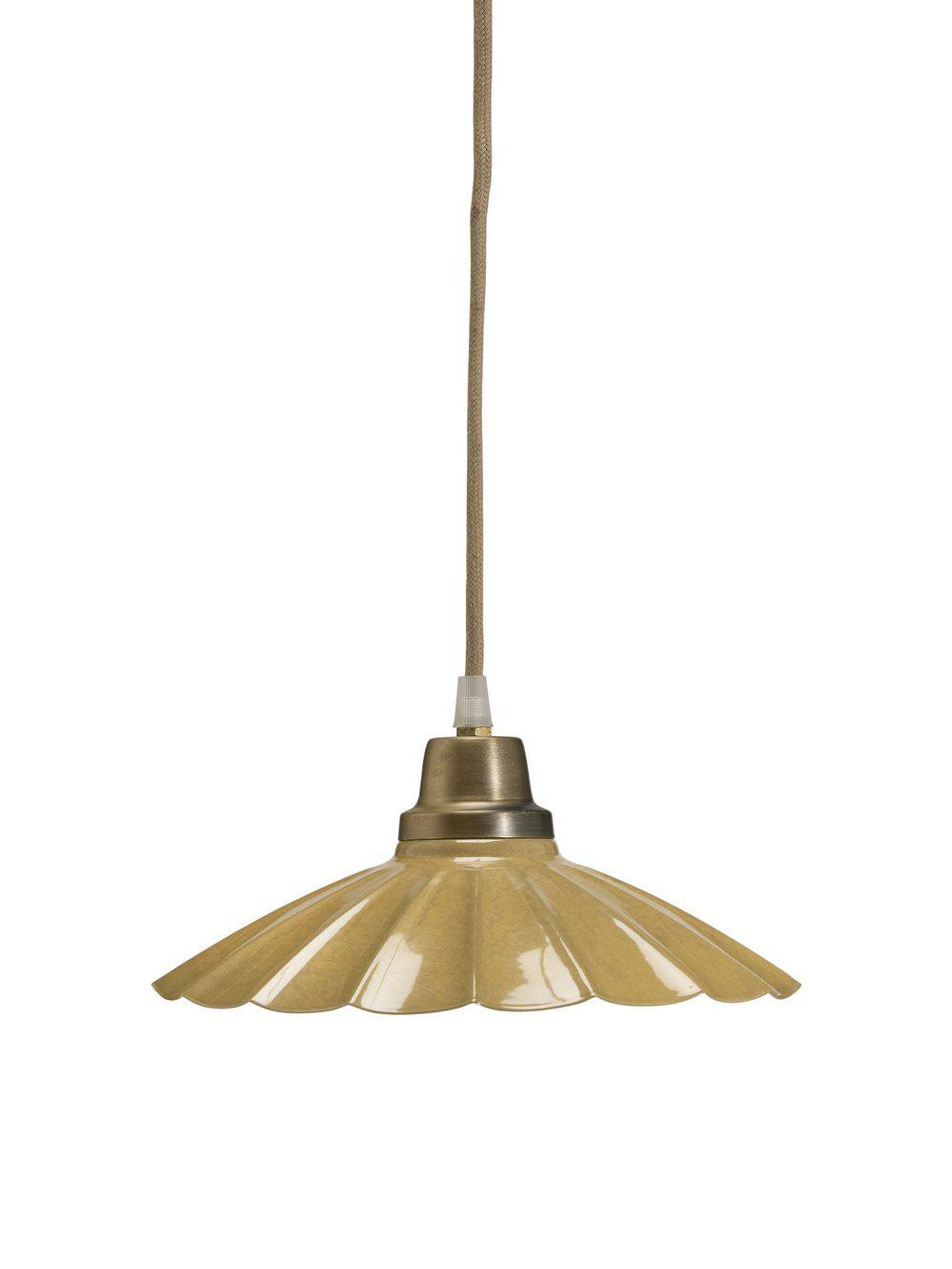 Ester fönsterlampa är en liten pendellampa som ger en varm, riktad ljuspunkt i ditt hem. Den senapsgula skärmen och antika mässingsdetaljen passar bra i vardagsrum, matplats eller hall — platser där du vill skapa mer stämning och visuellt fokus med en taklampa.