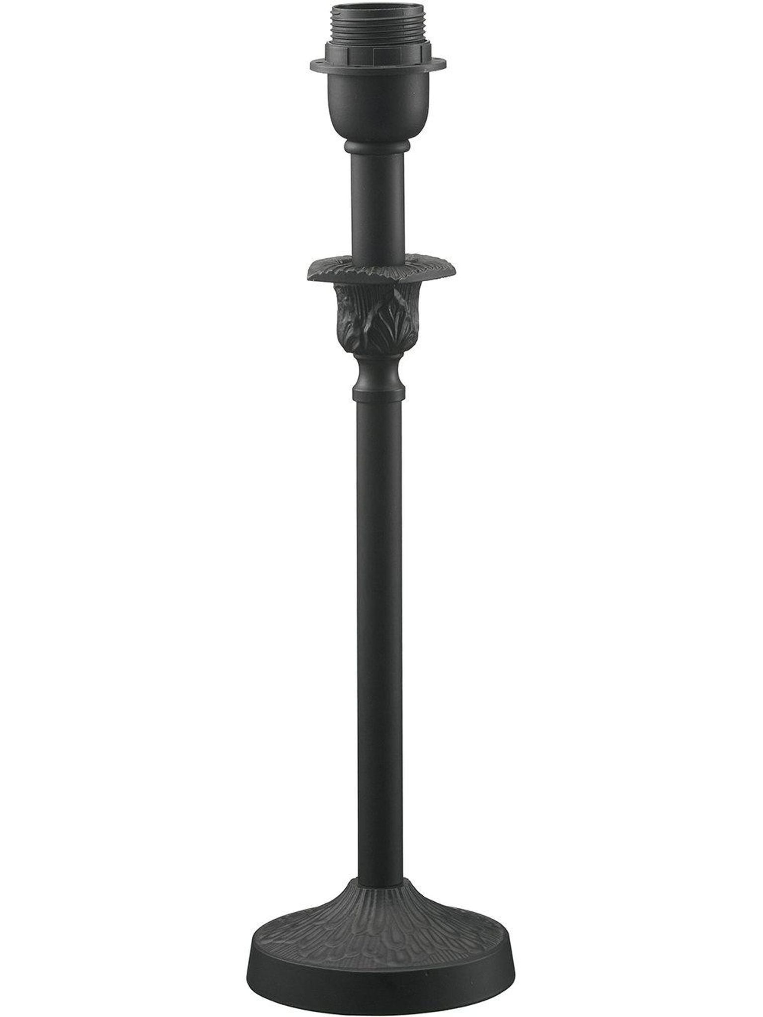Svart lampfot i metall, 41 cm hög med E27-sockel och 150 cm sladd. Snygg och praktisk, passar ditt skrivbord eller sängbord, funkar bra när du bygger egen bordslampa och håller länge.