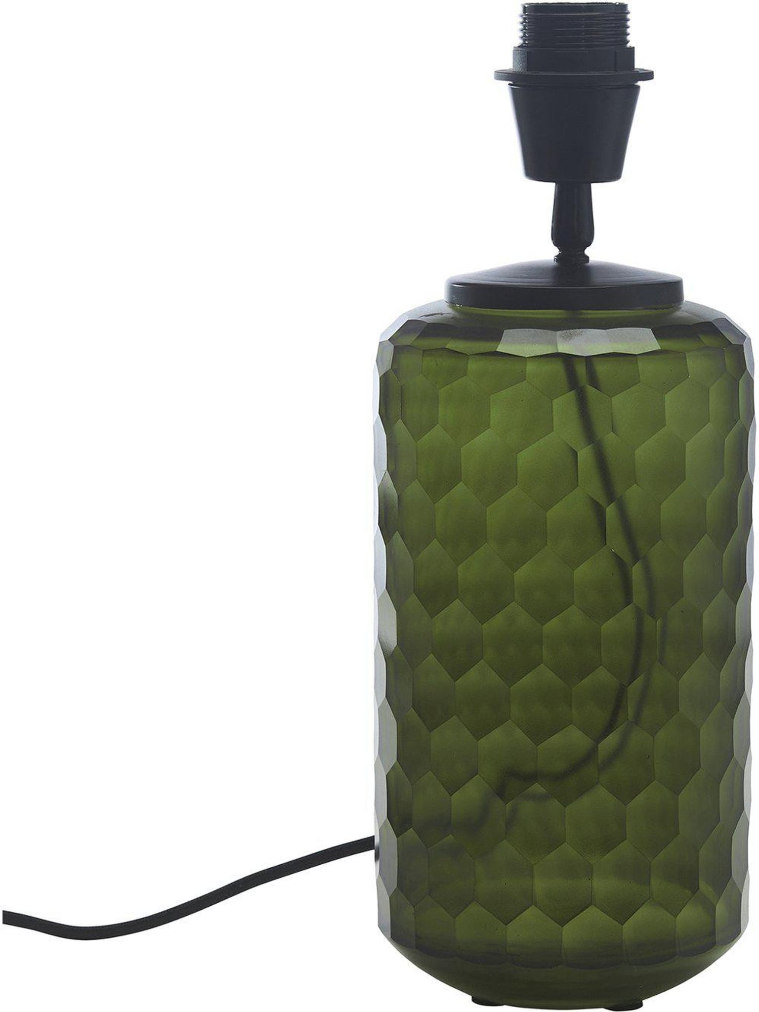 Gabby grön glasbordslampa 35 cm med honeycomb-mönster och matt svart metall. Den passar bra på ditt sängbord eller sidobord, är snygg och praktisk, funkar och håller länge; 250 cm kabel ger flexibel placering.