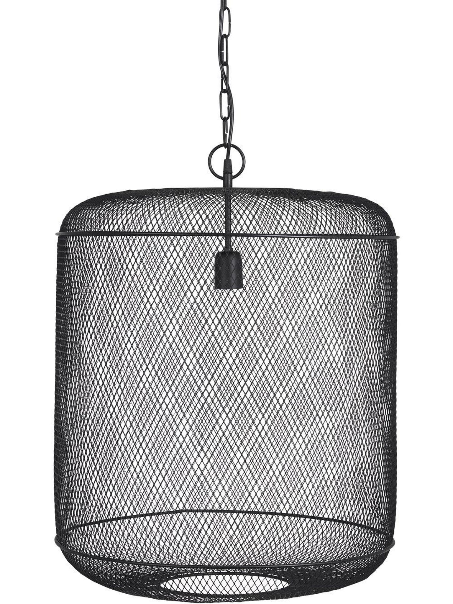 Den här stora svarta metallgallertaklampan är en pendellampa/hänglampa som passar i matrum, vardagsrum och hall. Som taklampa ger den både funktionellt ljus och ett dekorativt blickfång — när du tänder den skapar gallret fina ljusreflektioner som lyfter stämningen i rummet.