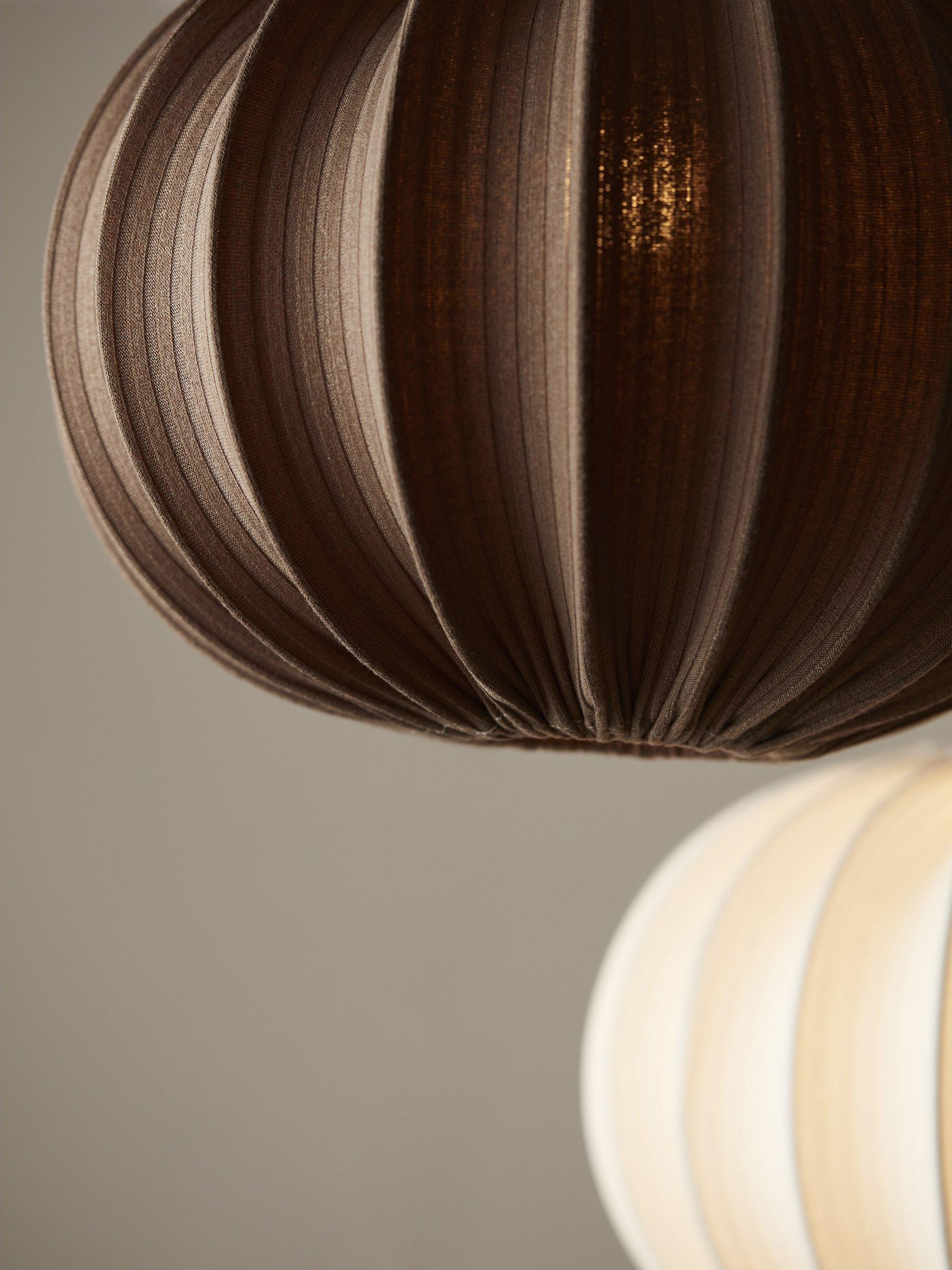 Hilma Jersey Takskärm i nougat är en ribbad takskärm som ger ett mjukt, varmt sken. Den passar i vardagsrum, över matbord eller på arbetsplatsen där du vill ha jämn ljusspridning och en neutral färg som smälter in i din inredning.