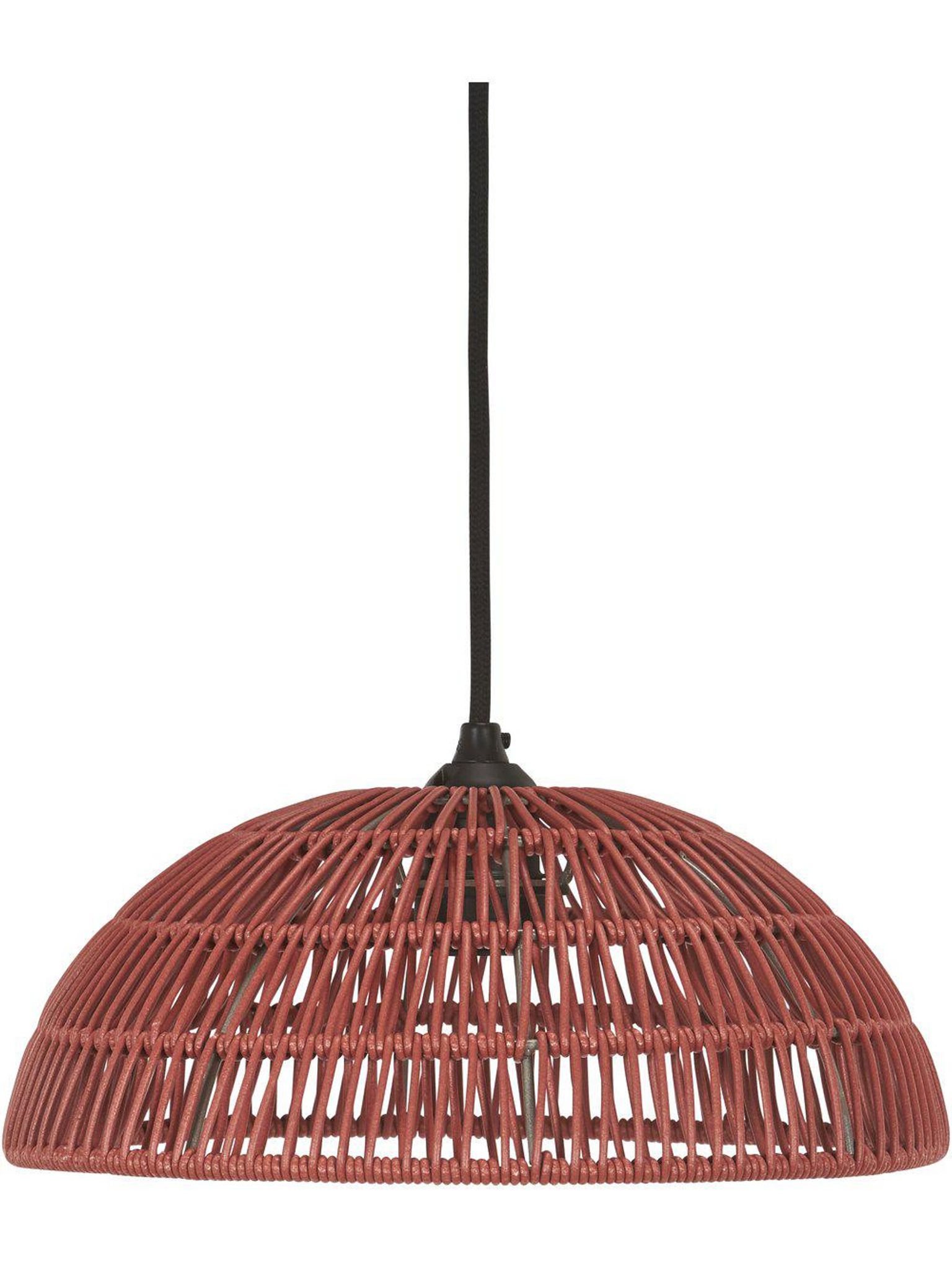 Röd utomhuspendel i polyrattan, Ø 30 cm × H 12 cm, från PR Home. Passar din uteplats och veranda, ger snygg, praktisk utomhusbelysning som håller länge och funkar bra.