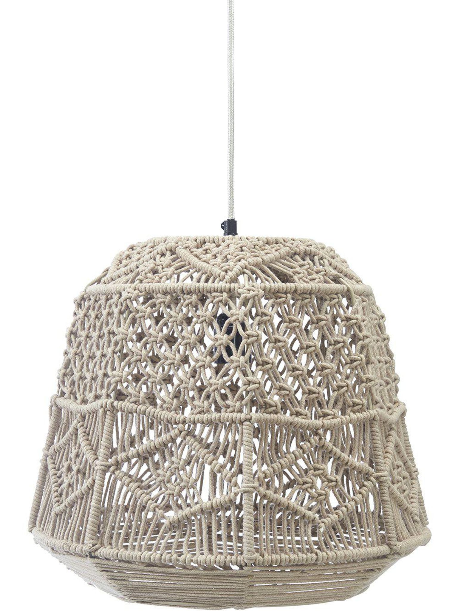 Handknuten macramétaklampa 40 cm i bomull, beige från PR Home med E27 lamphållare och 135 cm textilsladd. Snygg och praktisk taklampa som passar och funkar bra i ditt vardagsrum eller hall och håller länge.