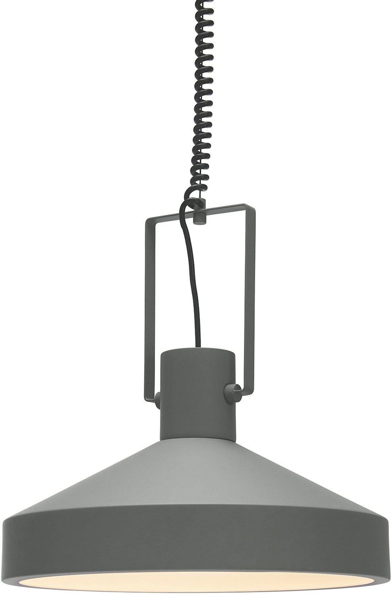 Jojo Sandy Grey pendel 40 cm grå metall med diffuser och E27-sockel. Justera kabeln 1–1,8 m så passar den över ditt matbord eller i köket; den är snygg, praktisk, funkar bra och håller länge.