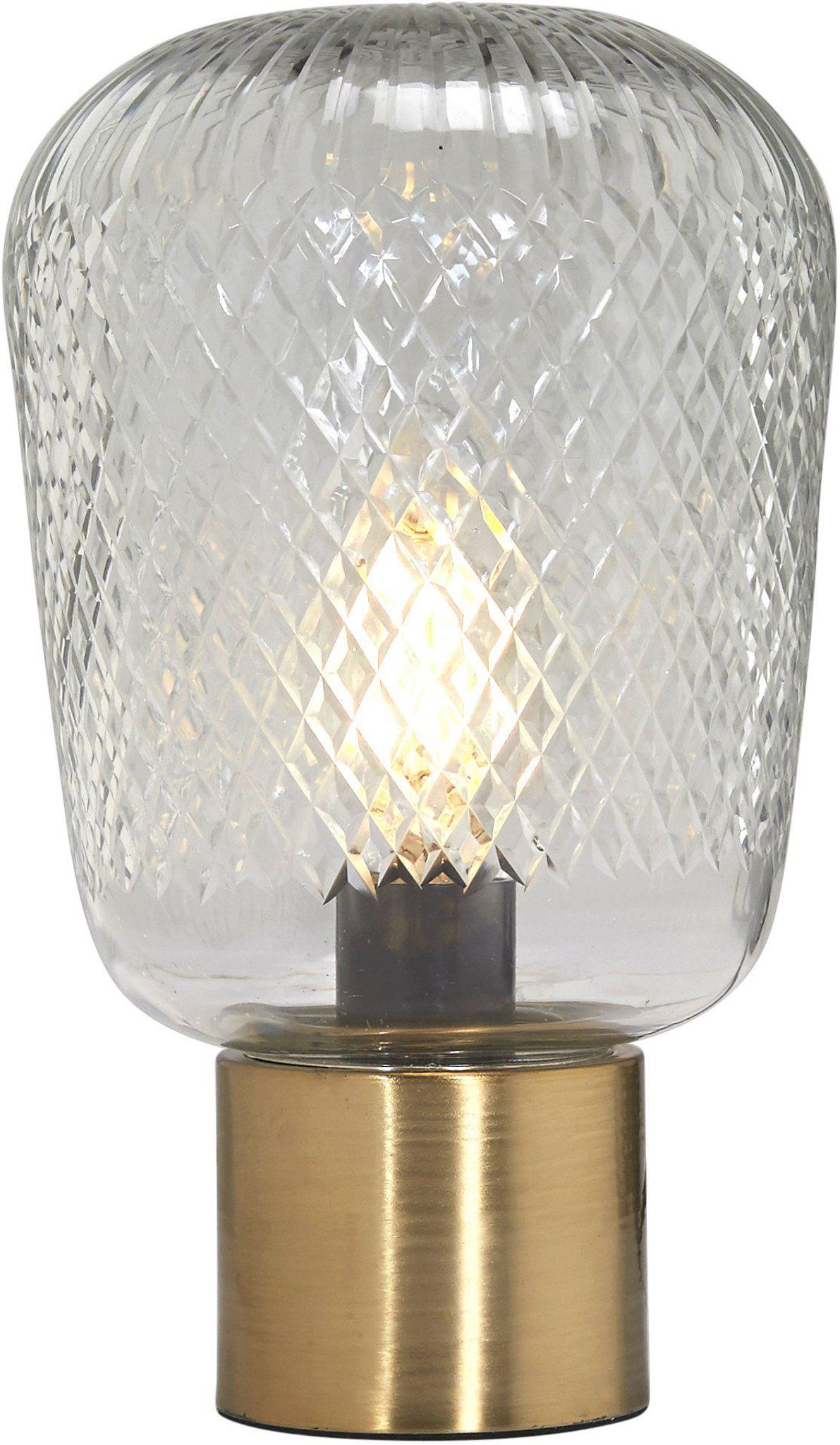 Juliette bordslampa i handslipat klart glas med mässing, 21 cm hög och 12 cm bred. Den är snygg, praktisk och håller länge; passar på ditt sängbord eller sidobord och funkar bra som läslampa.
