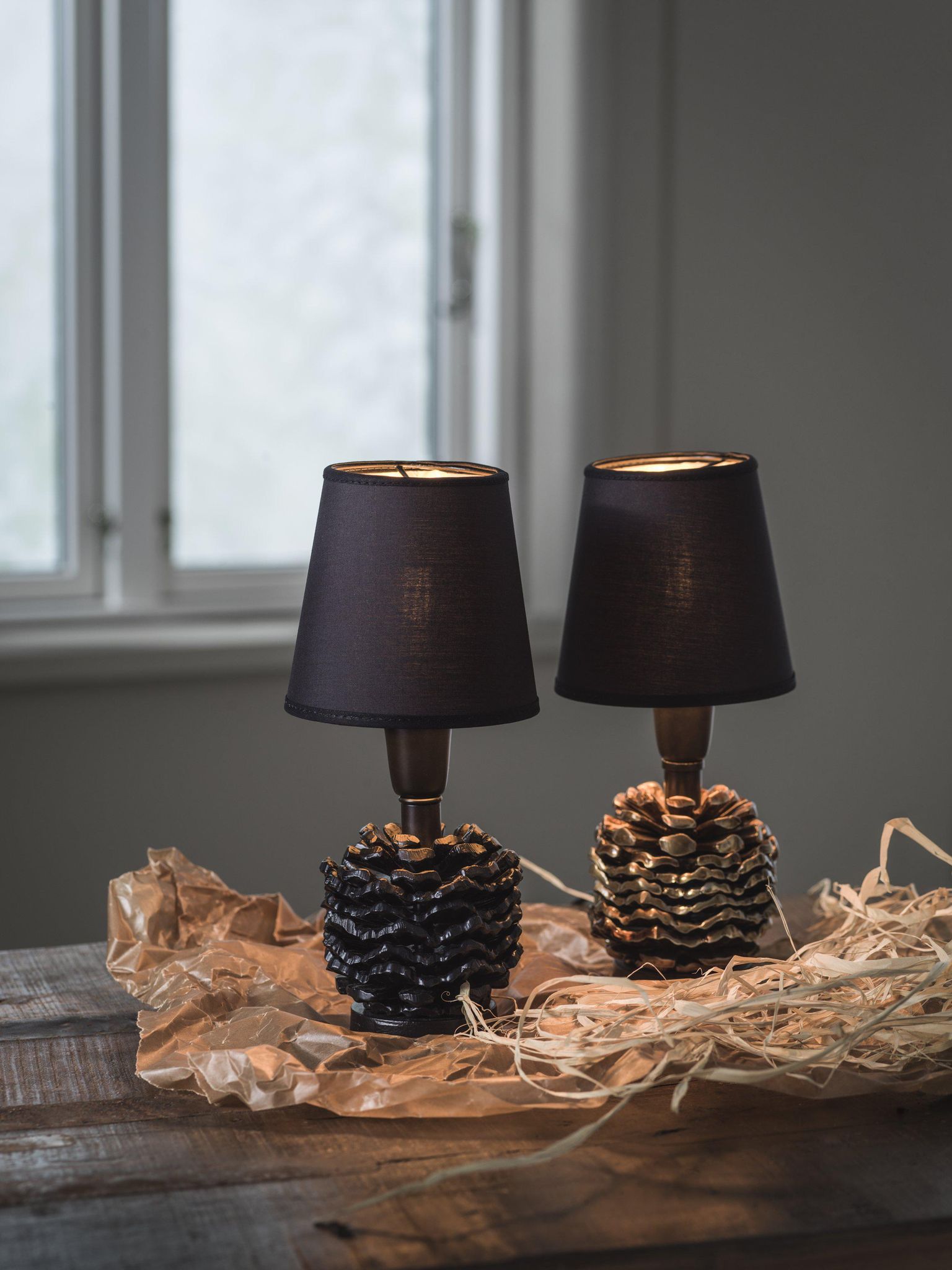 Lampfoten är omsorgsfullt utformad och kombinerar stil med praktisk funktion. Den koniska formen påminner om en kotte och blir ett diskret blickfång som passar flera inredningsstilar. E14-sockeln gör det enkelt för dig att välja rätt glödlampa för den stämning du vill skapa.