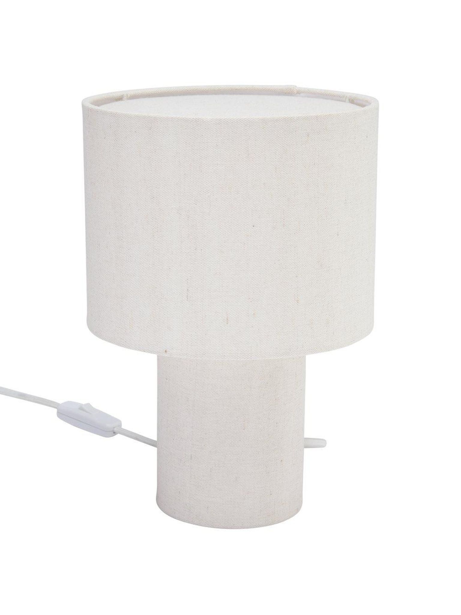 Beige textilbordslampa Leah, 28 cm, från PR Home med E27-sockel och 2 m textilkabel. Passar på ditt bord, funkar som praktisk belysning, är snygg och håller länge.