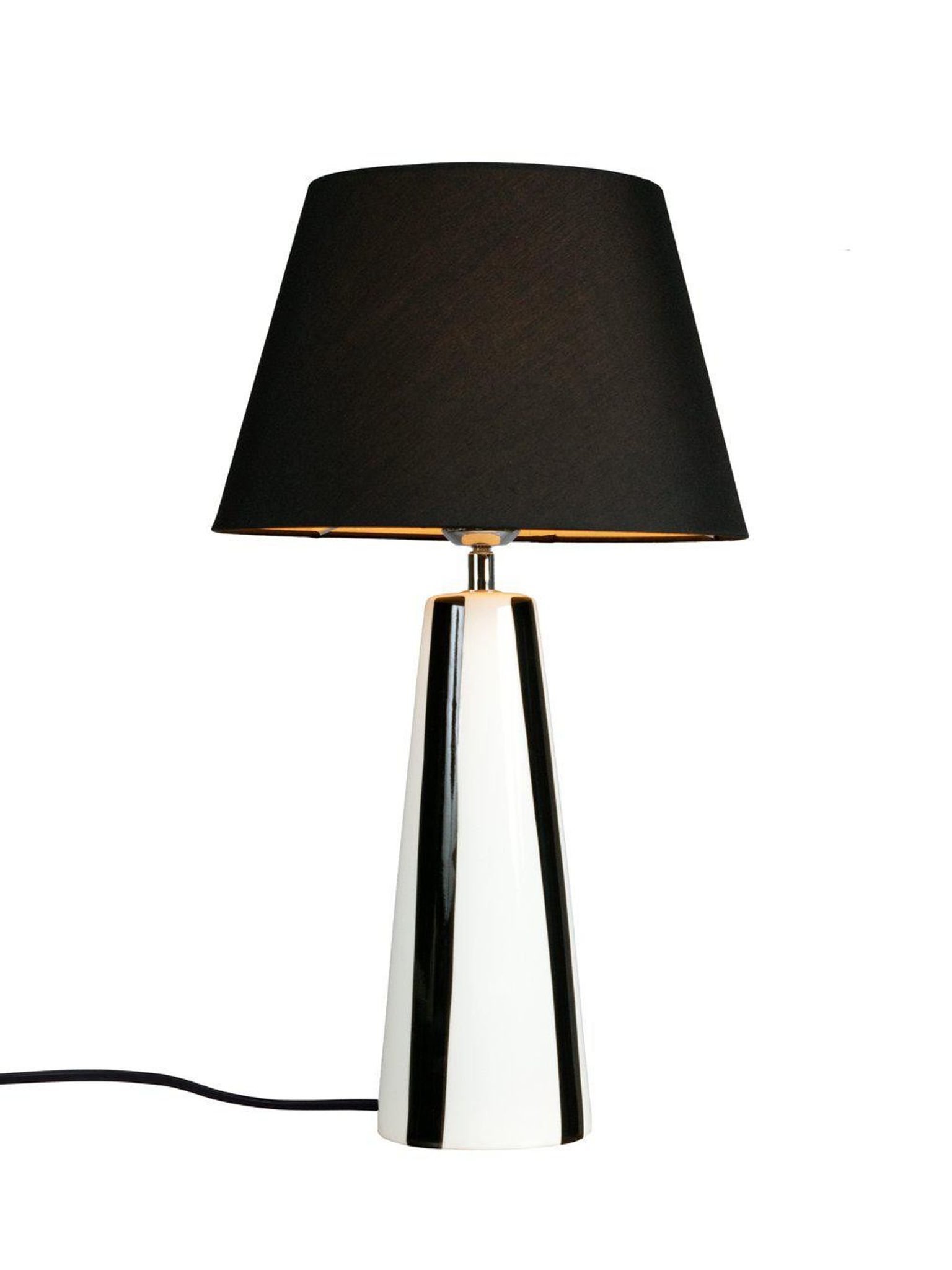 Leya bordslampa i svart/vit är en handmålad keramikbordslampa som ger ditt rum en personlig touch. Den passar bra på ett bord, sidobord, skrivbord eller nattduksbord och fungerar lika väl i vardagsrum, sovrum eller arbetsrum — som läslampa eller som mjuk stämningsbelysning.