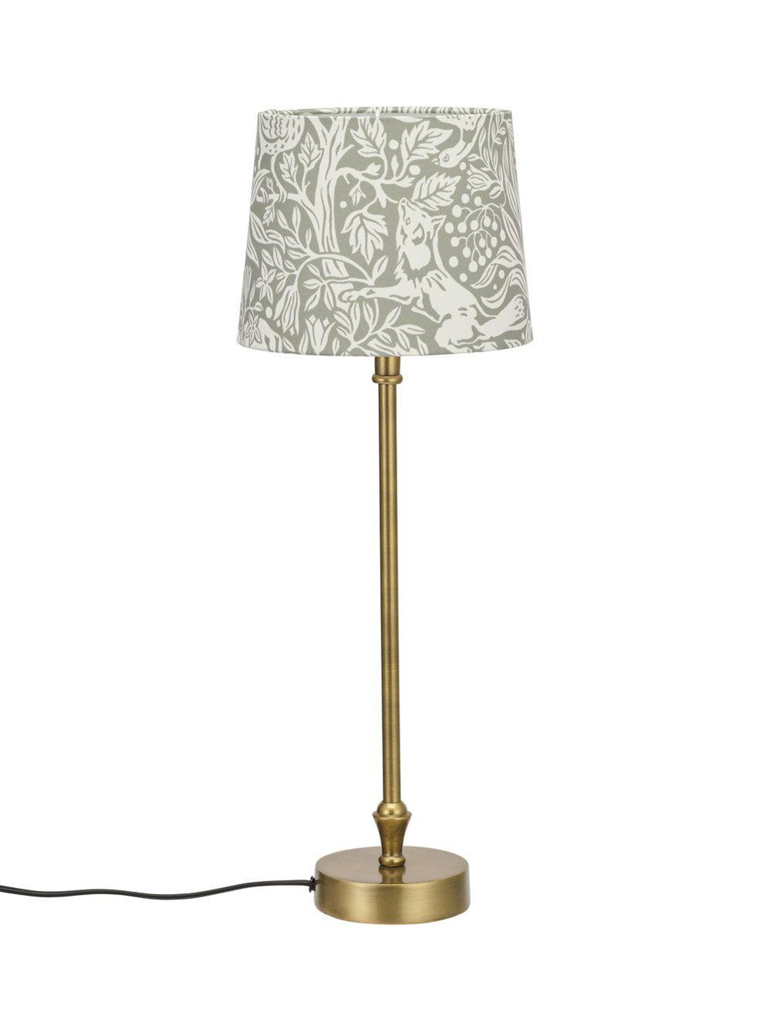 Liam bordslampa Eldertree Grön är en grågrön bordslampa med lampskärm från Borås Tapeter. Den passar i ditt vardagsrum, på sängbordet eller som läslampa vid favoritfåtöljen och ger en lugn och charmig stämning i hemmet.