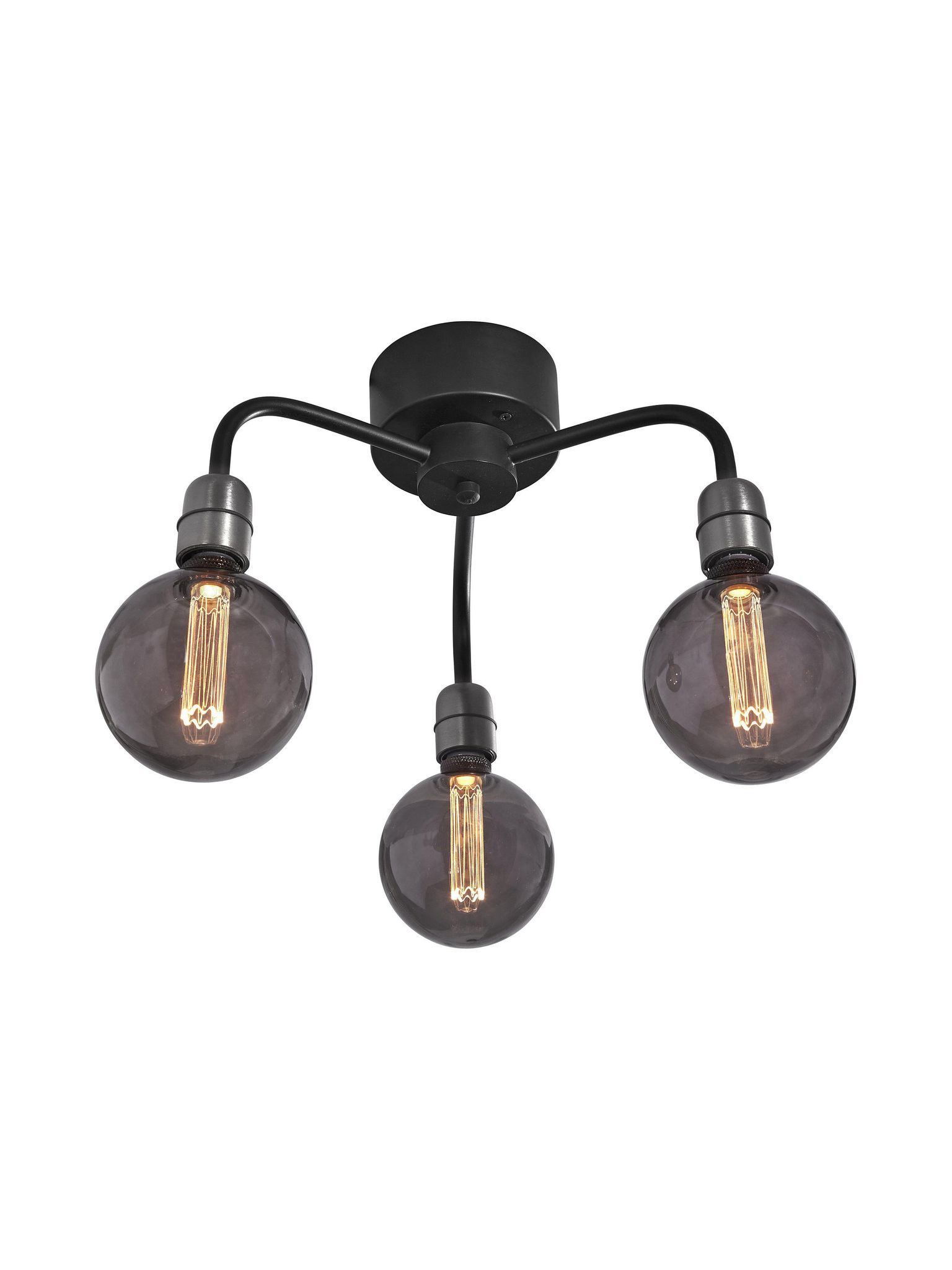 Denna minimalistiska svarta metallplafond i industriell stil har tre armar och ger tydlig takbelysning där du behöver den. Den fungerar väl över matbordet, i vardagsrummet eller i hallen när du vill ha jämn ljusspridning i ditt hem.