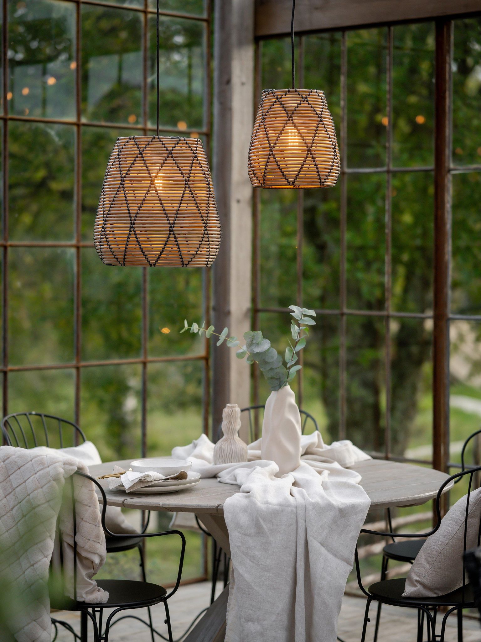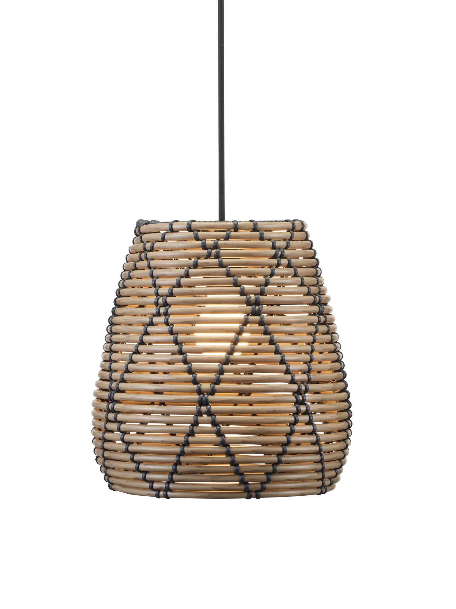 Denna takskärm möter behovet av hållbar utebelysning utan att tumma på utseendet. Polyrattanet tål väder och vind, vilket gör skärmen lämplig för altaner, balkonger och trädgårdar. Det svarta mönstret skapar ett fint ljusspel som ger en inbjudande stämning i din utomhusmiljö.