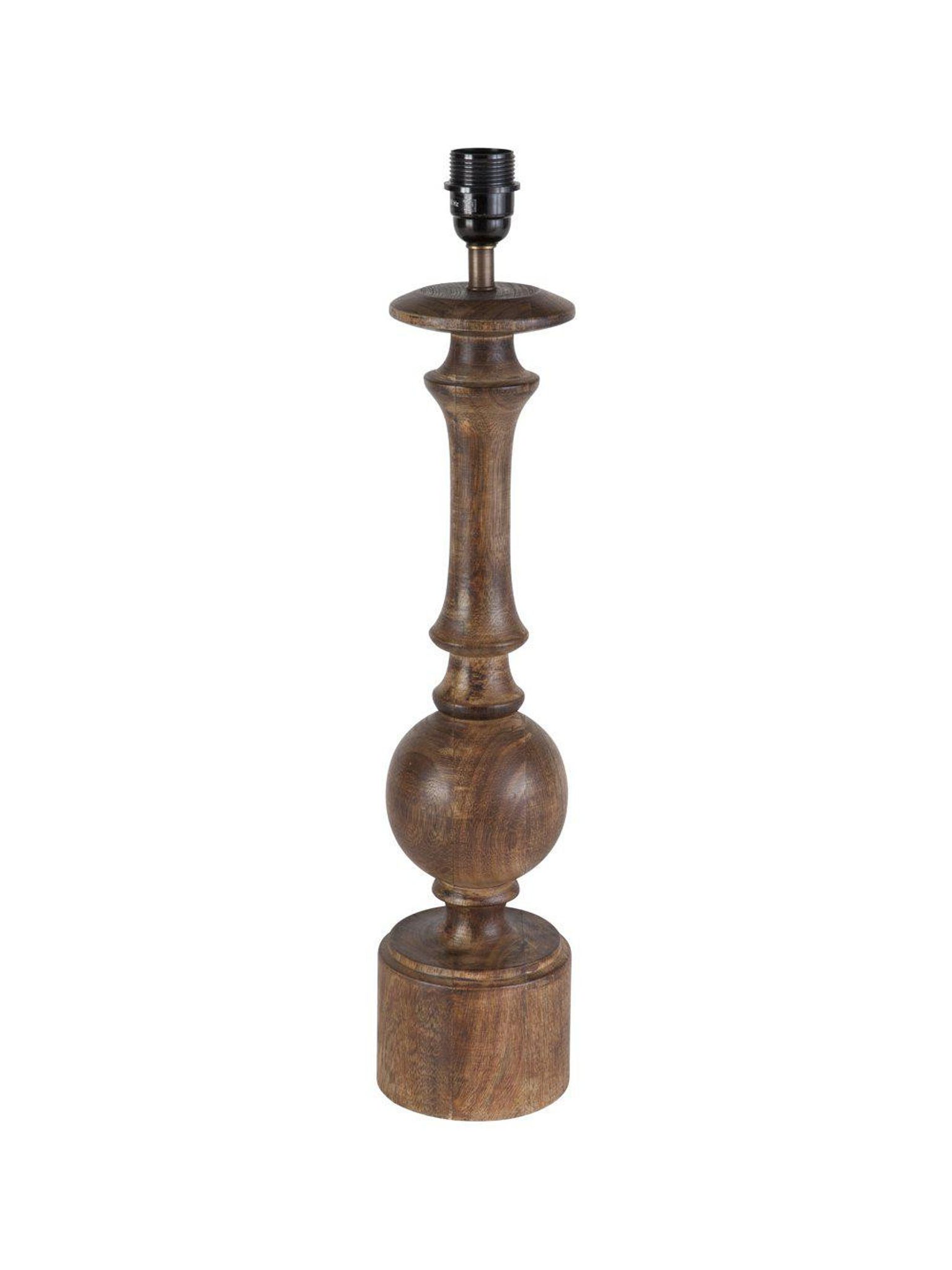 Handgjord bordslampa Molly i mangoträ, antikbrun finish, 61 cm hög med E27-sockel och 180 cm sladd. Den är snygg, praktisk och håller länge; den passar på ditt sidobord eller skrivbord och funkar bra som läslampa.