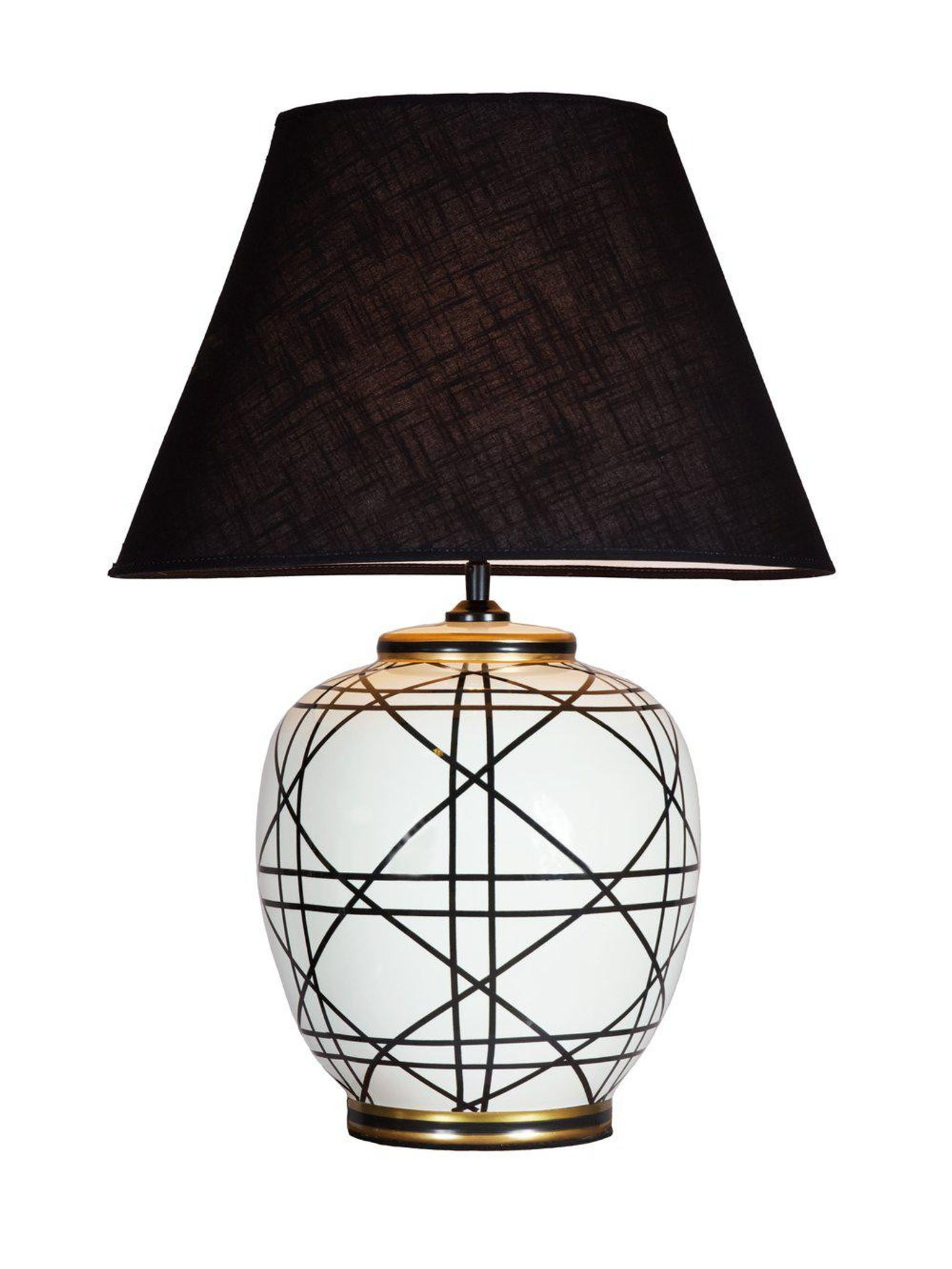 Upptäck PR Home New York Bordslampa i svartvitt, en elegant och stilren lampa som blir ett verkligt blickfång i ditt hem. Med en höjd på 60 cm och en konformad skärm som mäter 42 cm i bredd och 28 cm i djup, är denna lampan perfekt för sidobord, konsolbord eller som ett centralt inslag i fönstret.