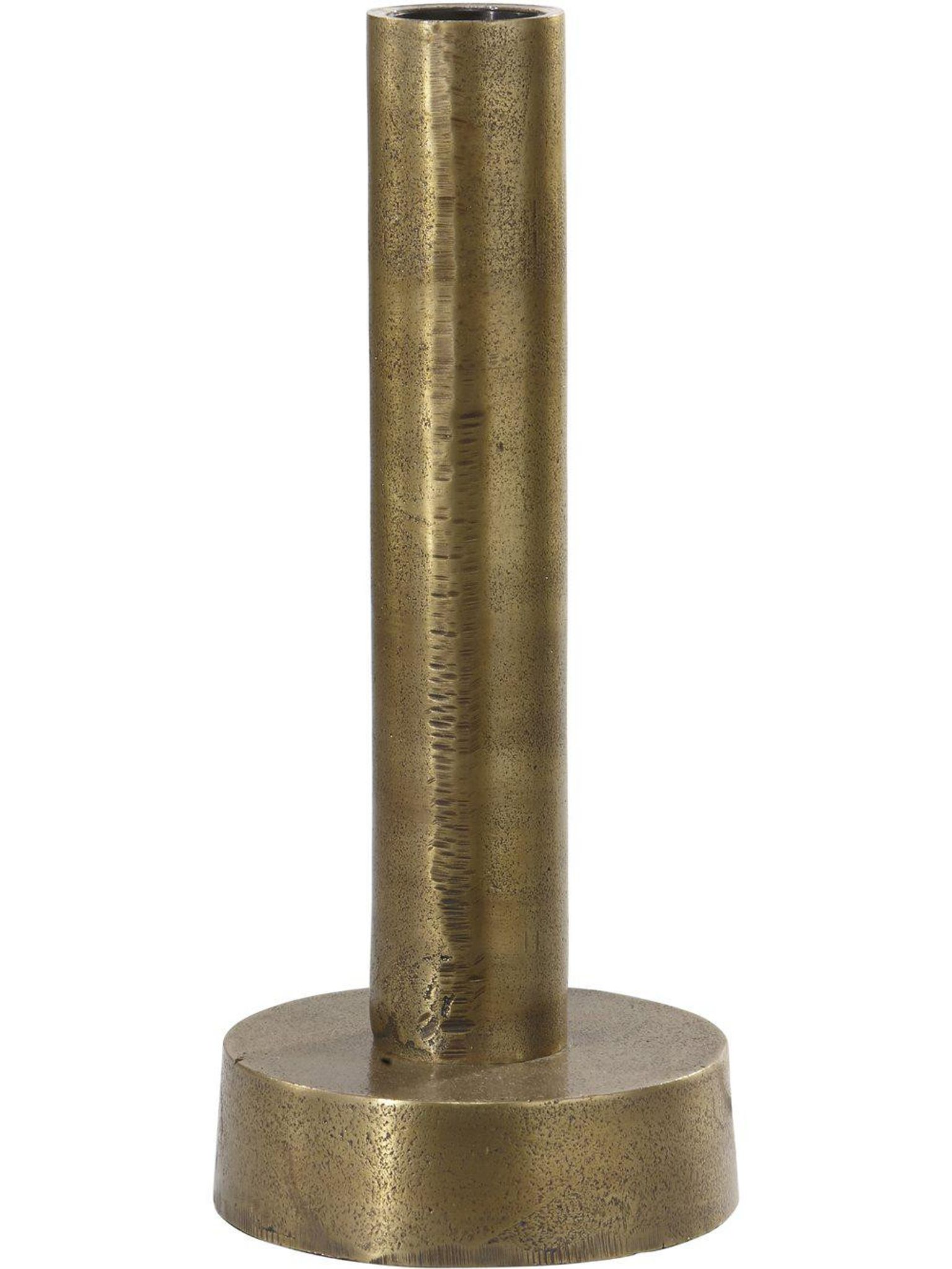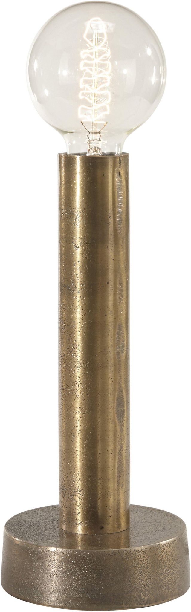 Bordslampa i metall med rustik mässingsfinish i guld, 30 cm hög, 12 cm bred och textilsladd 180 cm. Snygg och praktisk lampa som håller länge, funkar bra på sängbord eller i vardagsrummet och passar din inredning.