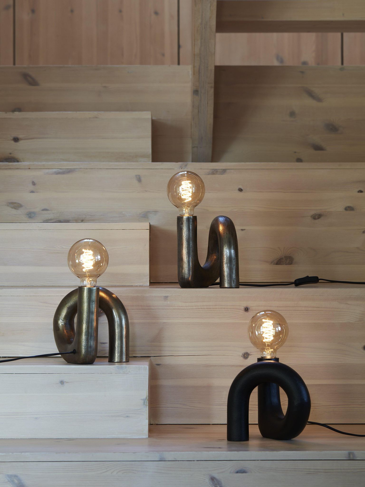 Notice Swirl lampfot i råmässing är en bordslampa med industrikänsla som ger ett varmt, inbjudande ljus. Den fungerar väl på soffbord, sängbord eller skrivbord när du vill ha riktat ljus eller skapa en mysigare stämning i ditt vardagsrum eller sovrum.
