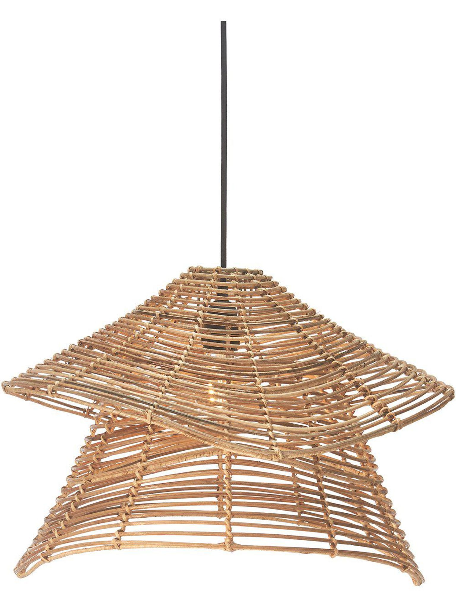 Handflätad rottingtaklampa Olga 51 cm — en pendellampa som passar i vardagsrummet eller över matbordet. Den tvådelade konstruktionen filtrerar ljuset och skapar vackra skuggor som ger din inredning en varm stämning. Lampan är gjord av naturmaterial, vilket gör varje exemplar unikt.