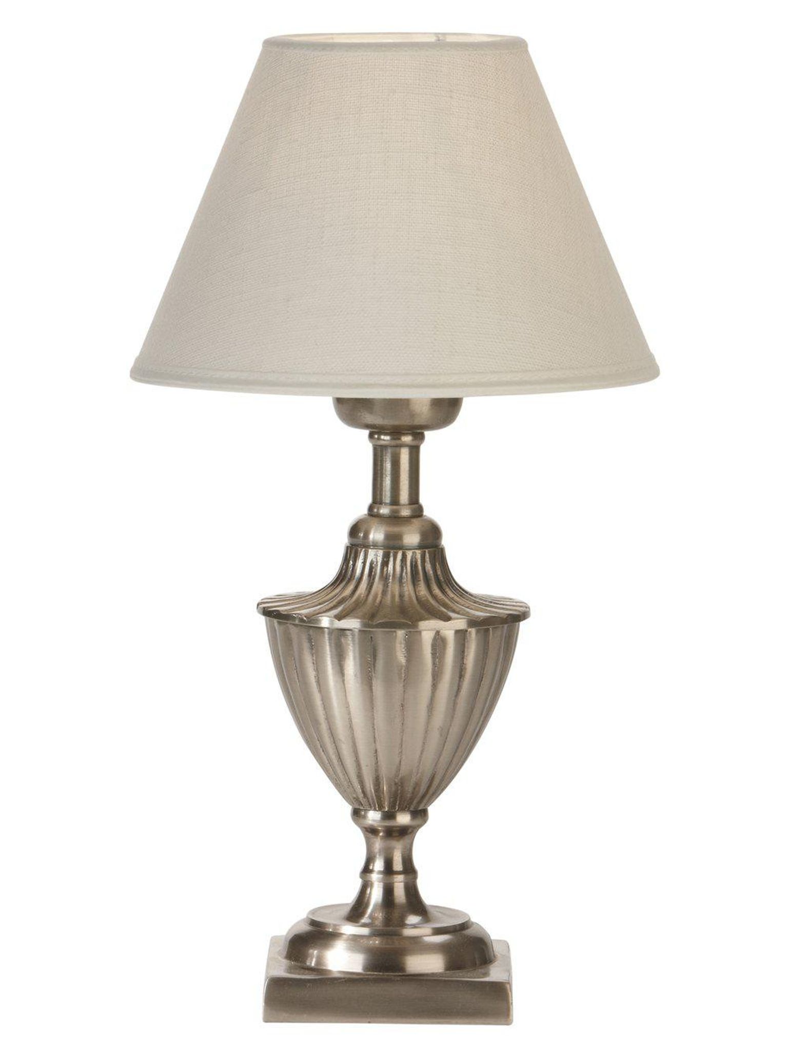 Pollino bordslampa 33 cm med offwhite lampskärm och antiksilver finish, E27-sockel. Passar på ditt sängbord eller vid soffan, funkar bra som läslampa, är snygg, praktisk och håller länge.