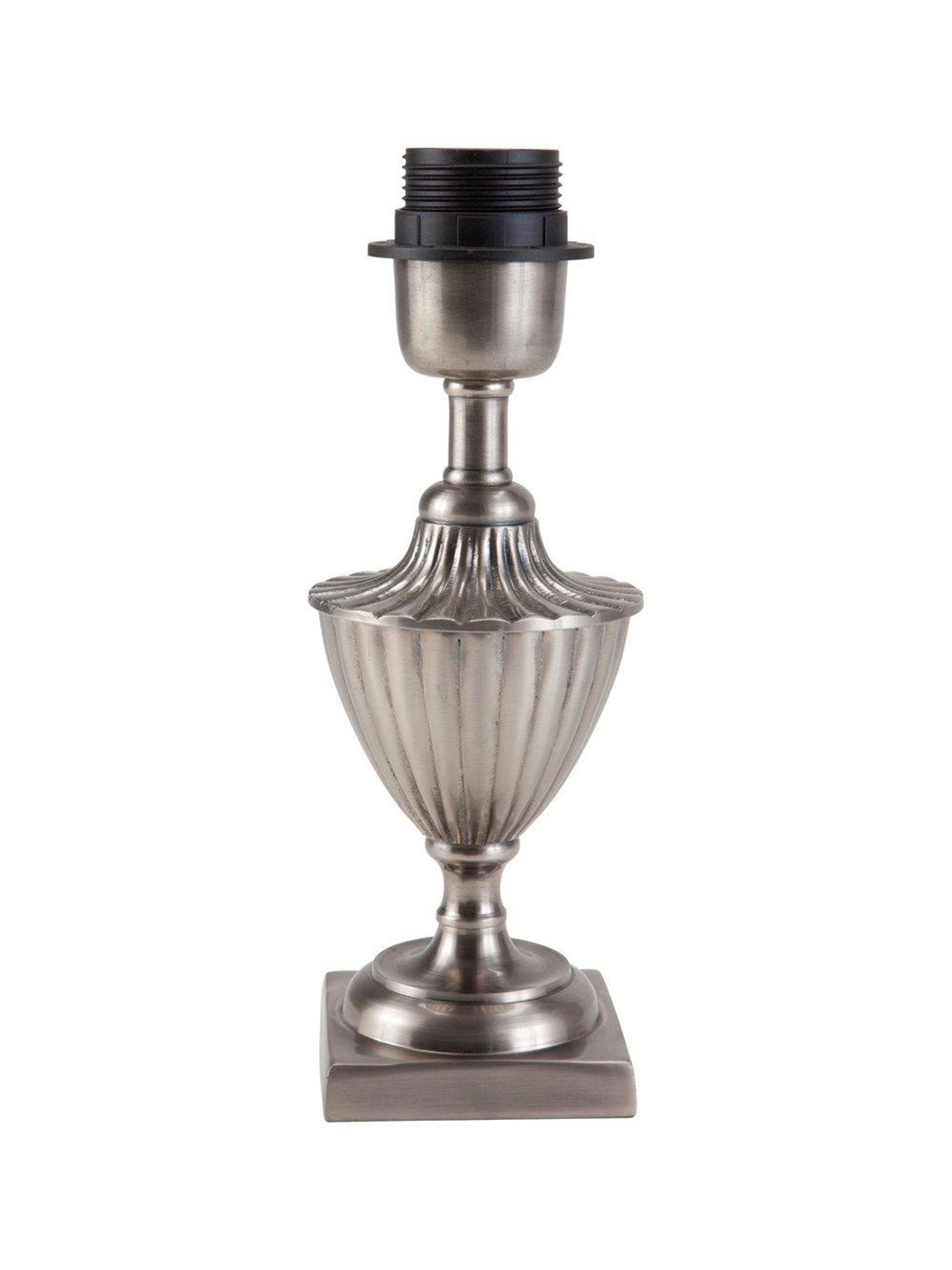 Pollino lampfot 24 cm i metall med antiksilver finish och E27-sockel. Snygg och praktisk, passar din bordslampa, funkar bra med E27-lampor och håller länge i silver.