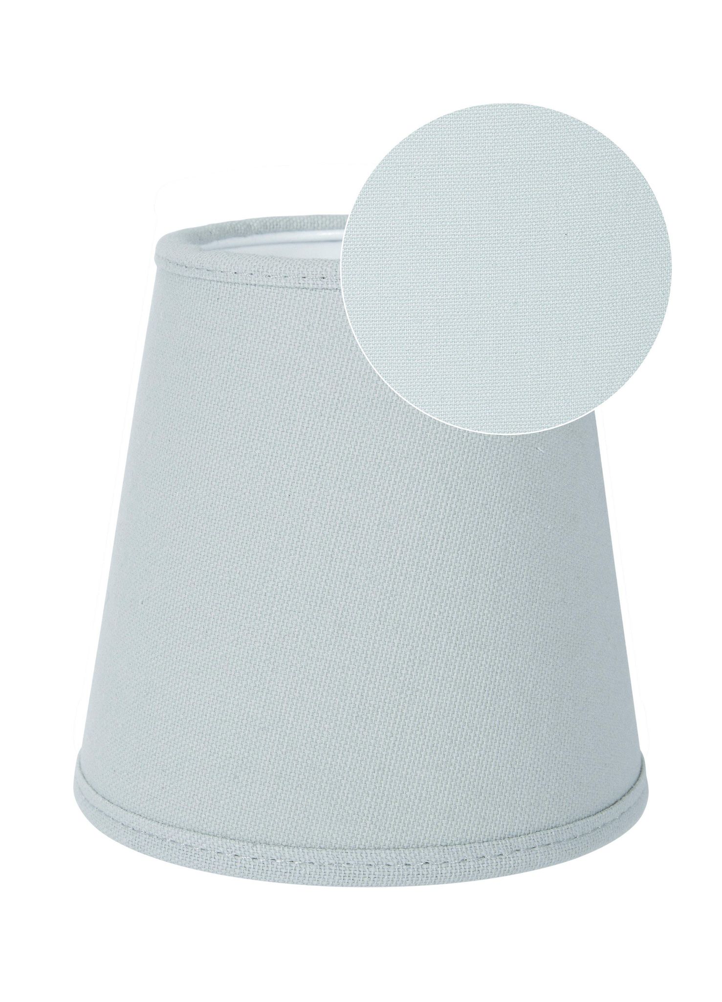 Lampskärm Queen Franza 12 cm i 100% bomull halvpanama, grå med klofäste. Den passar på ljuskronor och lampetter, funkar bra för din belysning, är snygg, praktisk och håller länge.