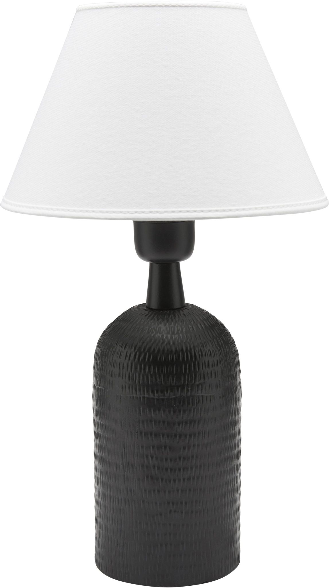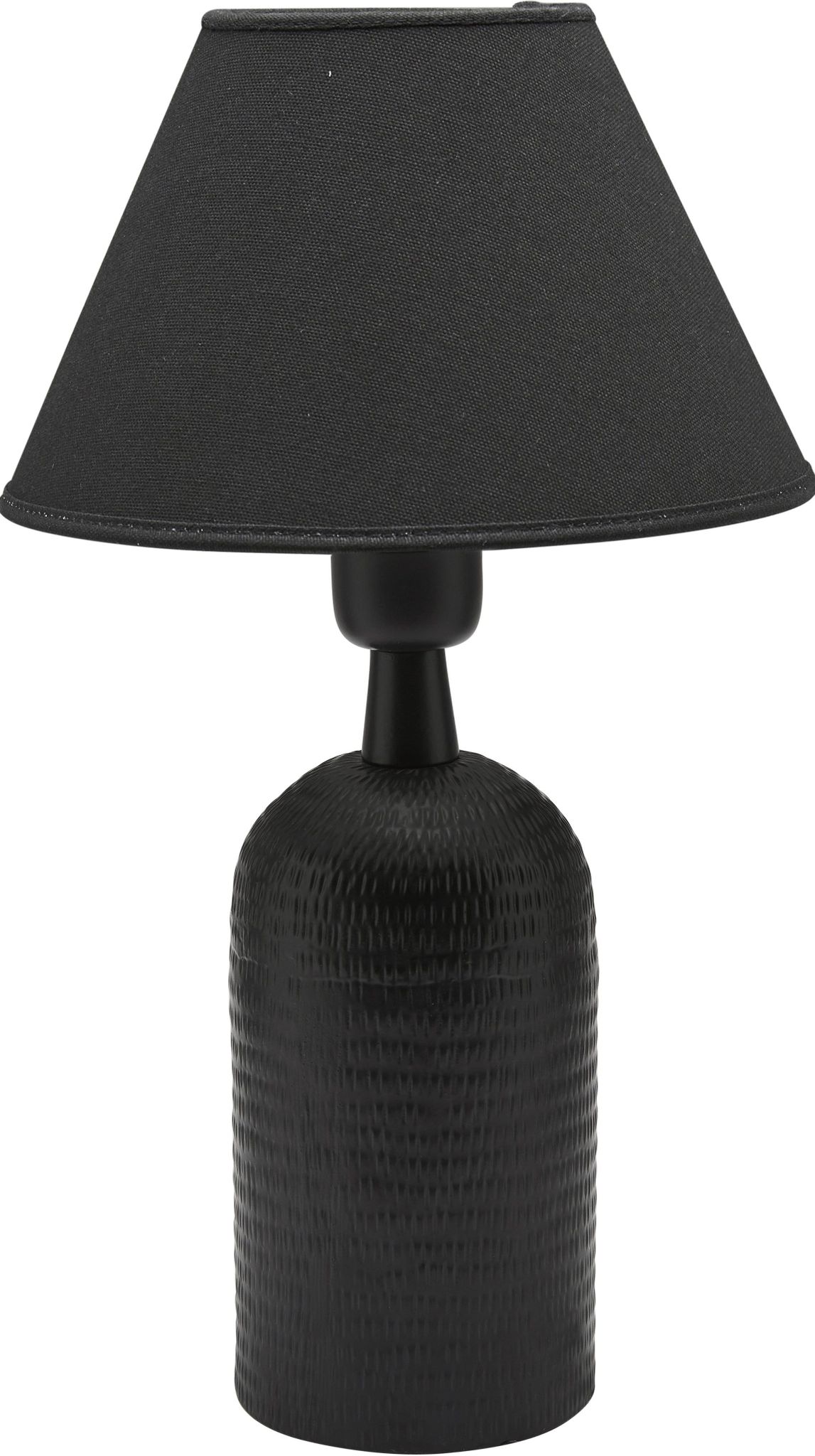 Riley matt svart lampfot är en kompakt bordslampa i hamrad metall som passar bra som sänglampa, läslampa eller som extra belysning i soffhörnan. Den enkla formen gör att den fungerar i många rum och stilar och hjälper dig skapa en trevlig stämning i ditt hem.