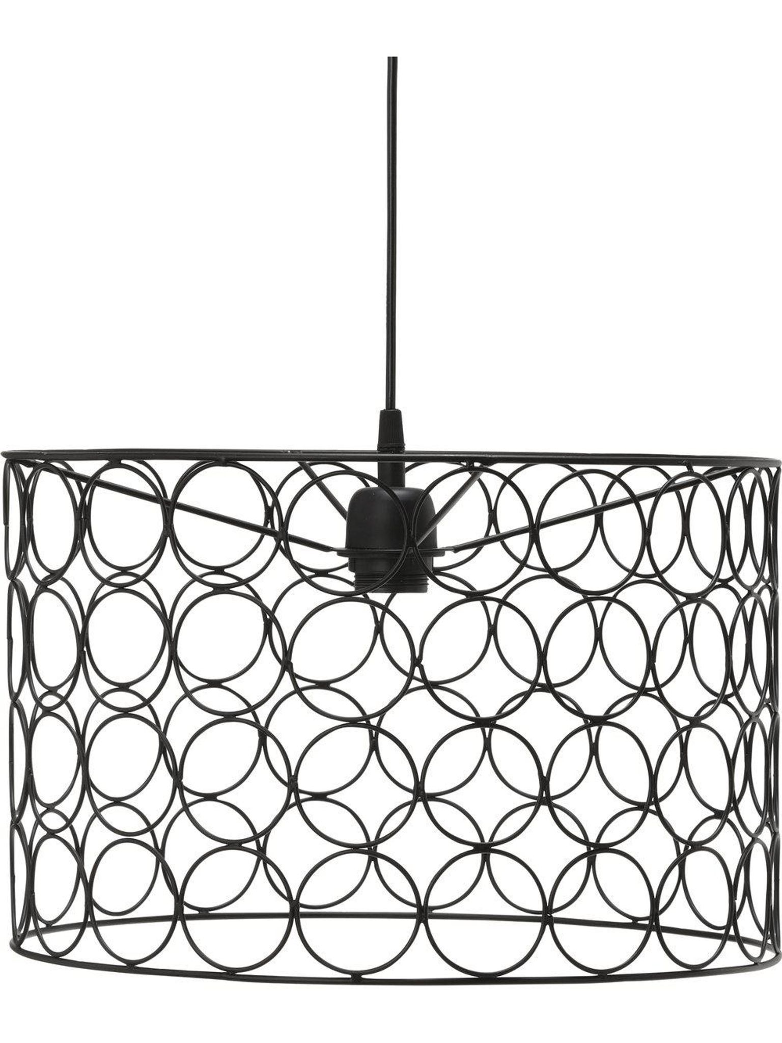 Svart pendellampa i metall, 40 cm i bredd och 26 cm hög, med 160 cm sladd. Den passar i ditt hem för inomhusbruk, funkar bra, är snygg och praktisk och håller länge.