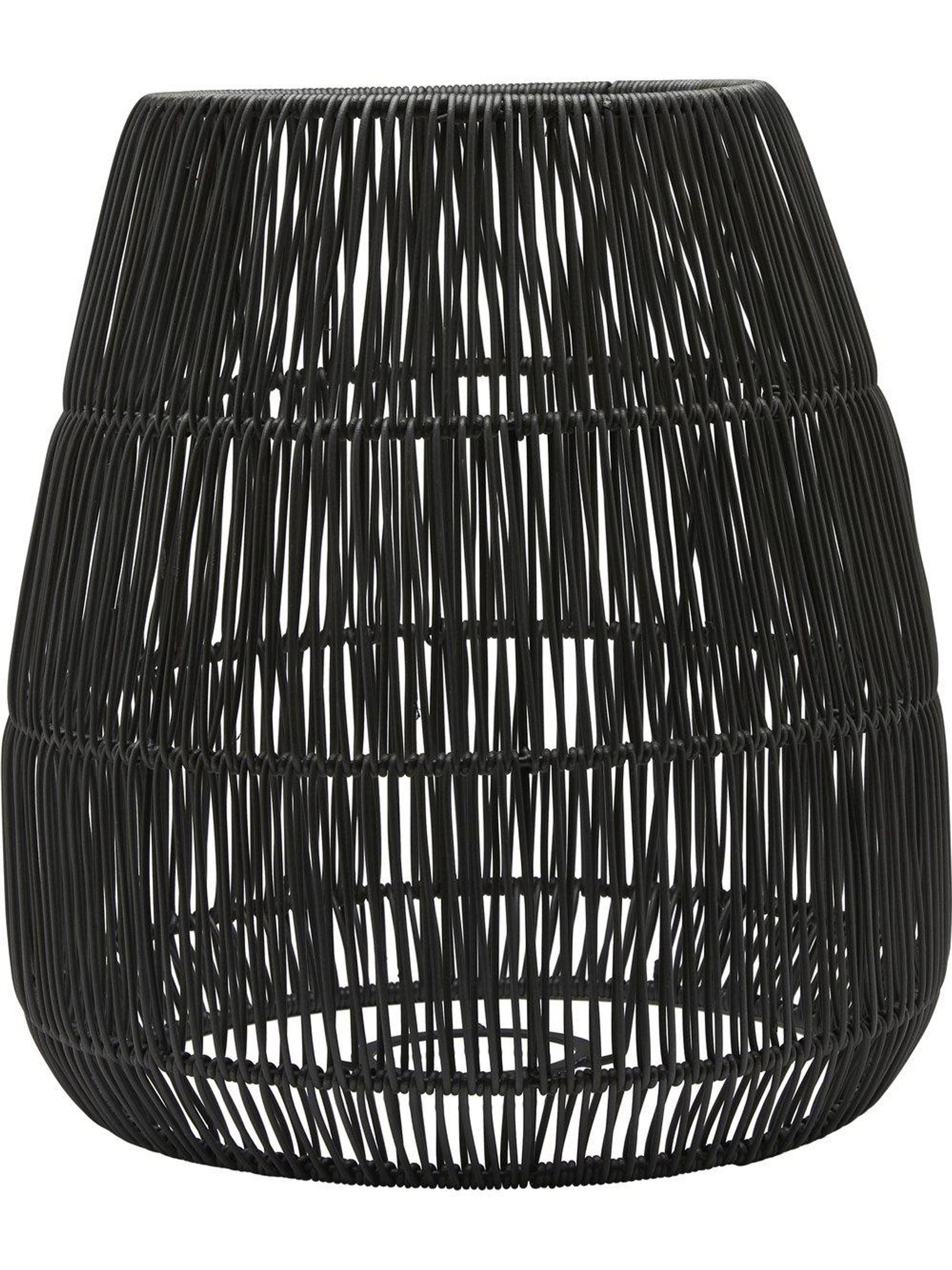 Svart utomhuslampskärm i polyrattan, höjd 40 cm, bredd 38 cm. Passar din uteplats och funkar i alla väder, håller länge, ger snygg ljusspridning och är en praktisk, bra lösning för utomhusbelysning.