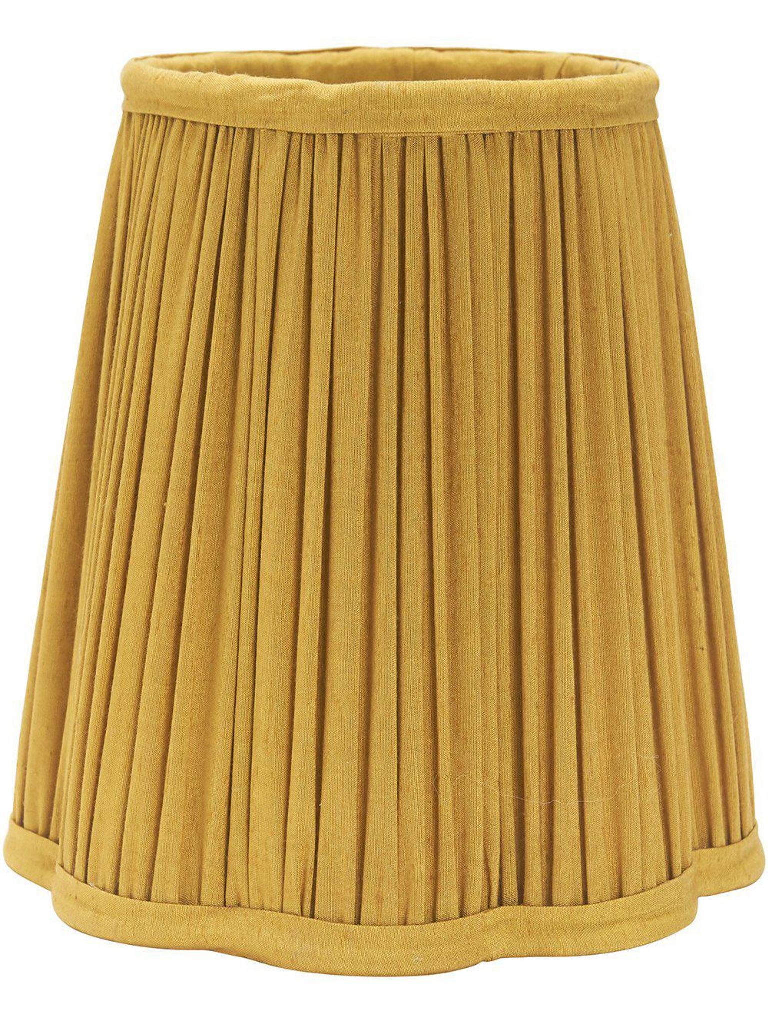 Siv lampskärm i senap är en stilren lampskärm med vågig form och rynkat tyg i sidenlook. Den passar i ditt vardagsrum, sovrum eller hall och lyfter rummet — passar välgjort till lampor med böjbar arm och ger ett mjukt, diffust ljus.