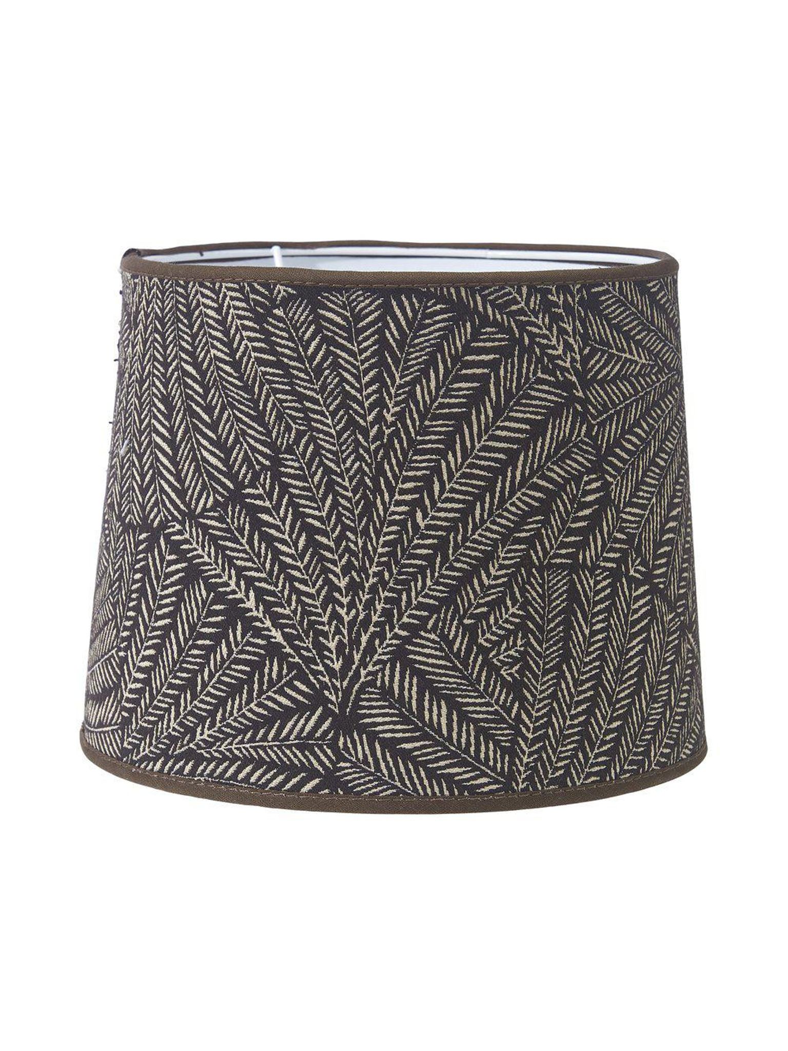Den här lampskärmen kombinerar funktion och utseende: bladmönstret skapar ett fokus i rummet medan den ljusa insidan förbättrar ljusspridningen. Som brun lampskärm fungerar den bra till olika färger och material och gör läslampan eller mysbelysningen mer effektiv i din vardag.