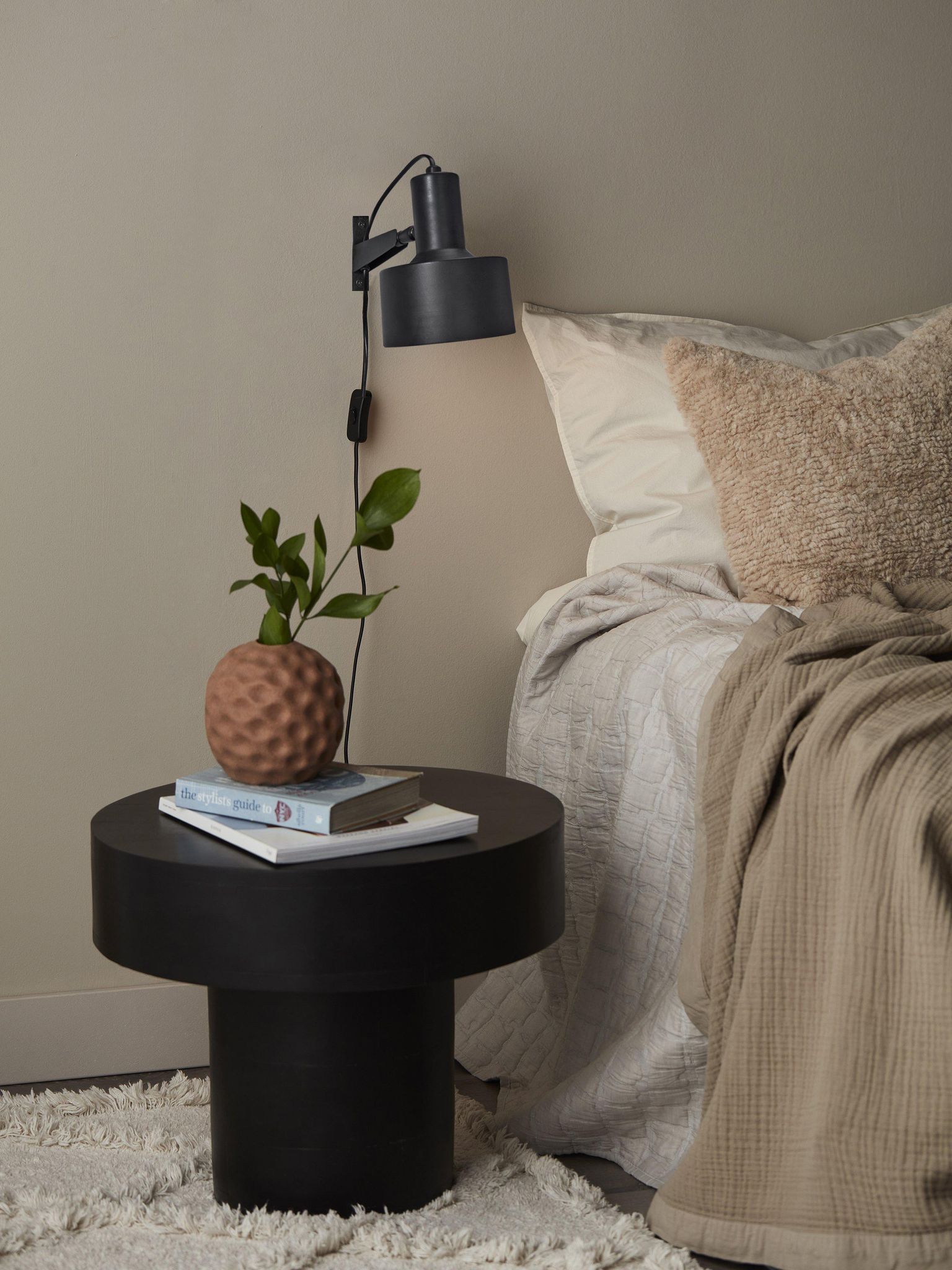 Den här justerbara vägglampan kombinerar funktion och enkel form. Du kan rikta ljuset för att läsa i soffan eller för att ge en mjuk stämning i hallen eller sovrummet. Matt svart metall ger en neutral och genomtänkt look som fungerar som dekorativ vägglampa i moderna hem.