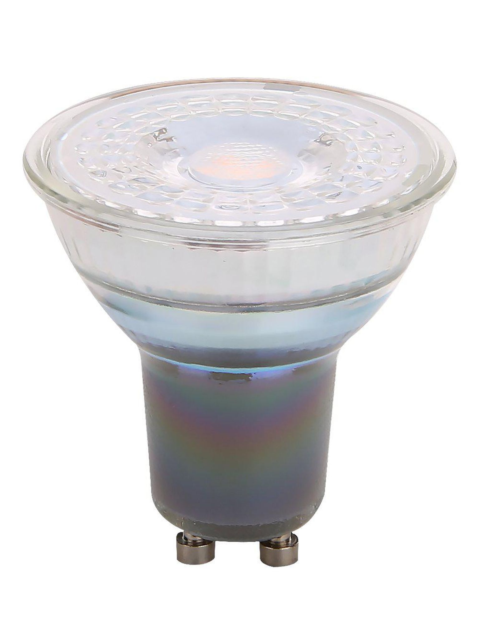 Dimbar GU10 LED-spotlight 5.5W, 5×5 cm i klar glas, varmvitt 38°. Passar din inomhusmiljö där du vill ha en snygg, praktisk, dimbar spot som funkar och håller länge samt ger bra ljus.