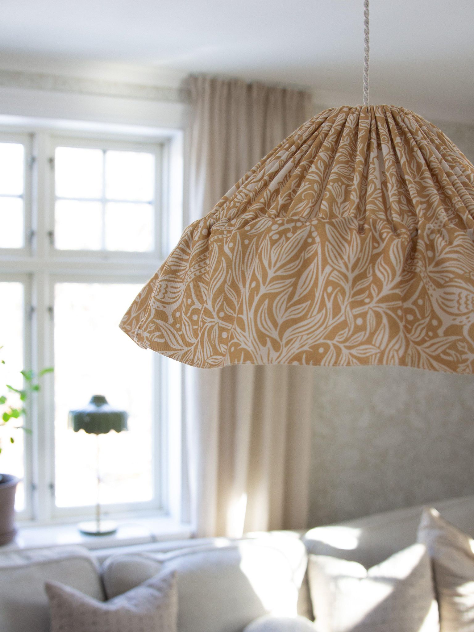 Stina Taklampa Eldertree kombinerar hållbarhet med en välgjord form. Den rynkade kjolen och koniska siluetten ger ett mjukt, riktat ljus som gör det lättare att skapa stämning vid middag, läsning eller vardagliga kvällar. Lampans lätta vikt gör den enkel att hänga upp och byta placering om du vill ändra din belysning.