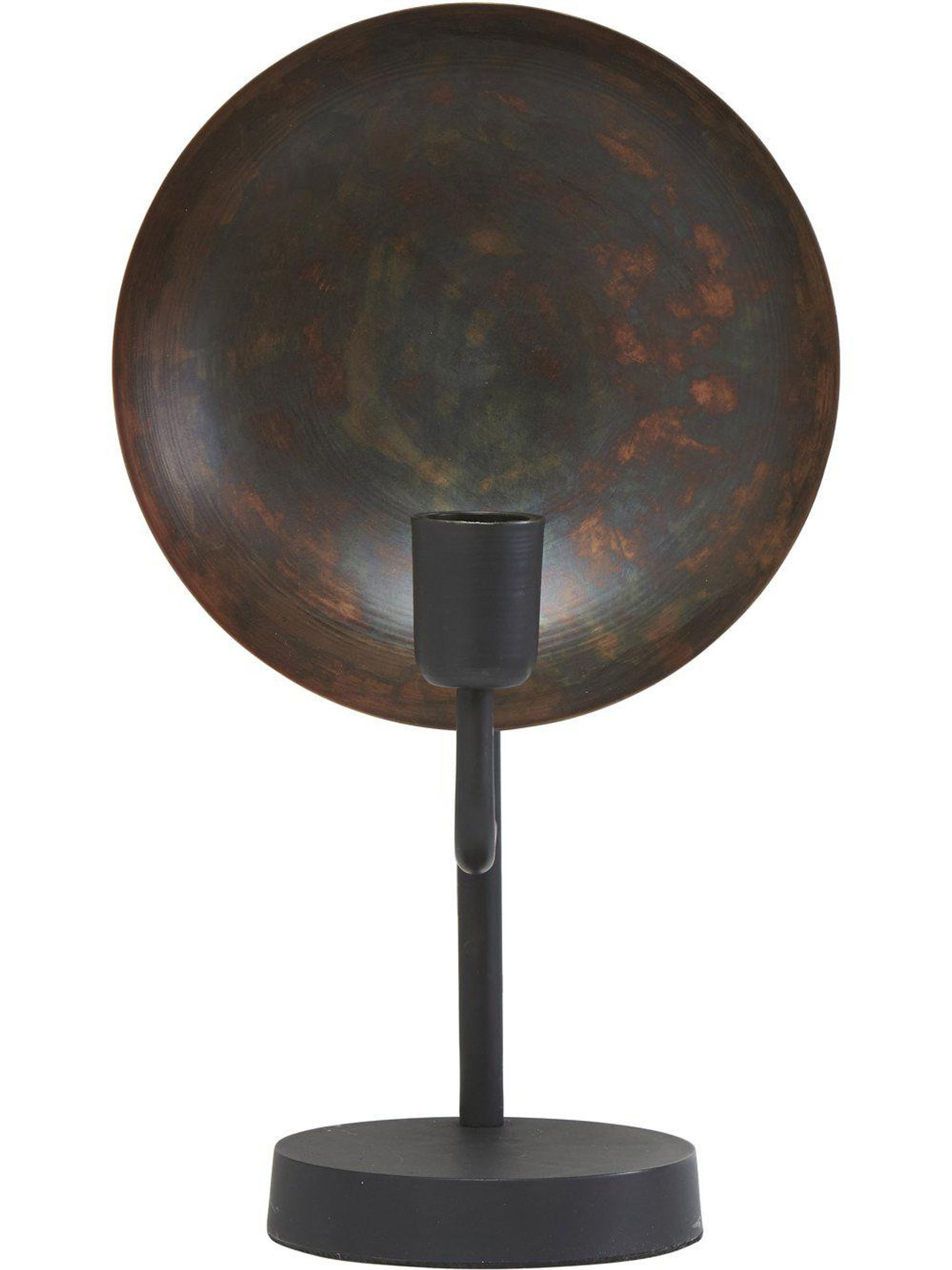 Lampfotens metallskärm reflekterar ljuset på ett fint sätt och gör varje exemplar lite annorlunda. Med 44 cm höjd fungerar den utmärkt som bordslampa för läsning eller som stämningsbelysning i vardagsrum och sovrum. E27-sockeln gör det enkelt att välja den ljuskälla som passar dina behov, så du får både funktion och stämning i samma lösning.