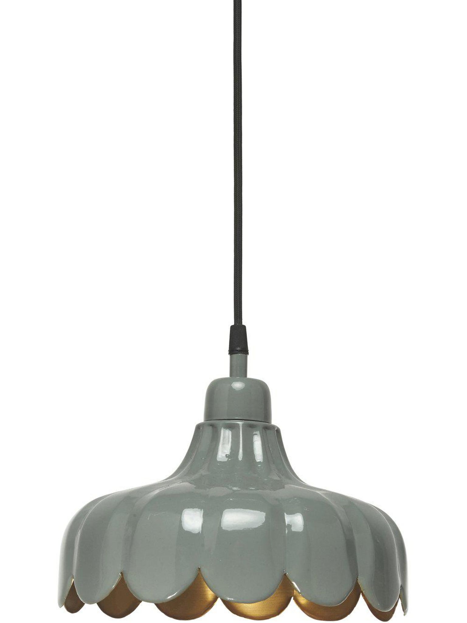 Den här gröna metallpendeln med blommönsterinspiration är gjord för att kombinera form och funktion. Det varma skenet från den guldfärgade insidan gör kvällarna mer ombonade och hjälper dig skapa rätt stämning när du äter eller umgås.