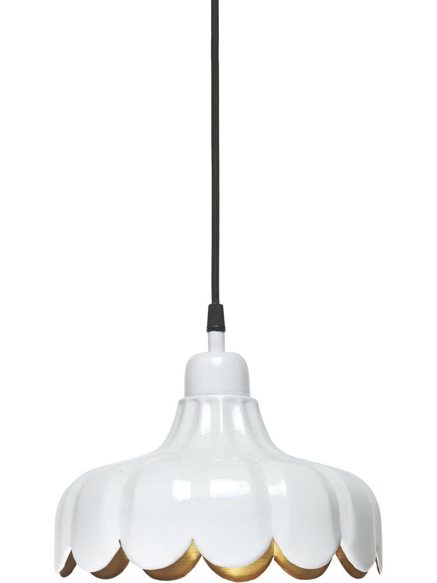 Vitt Wells pendel 24 cm i metall med vit finish och guldfärgad insida. Snygg och praktisk taklampa som passar i ditt tak eller fönster, funkar bra, håller länge.