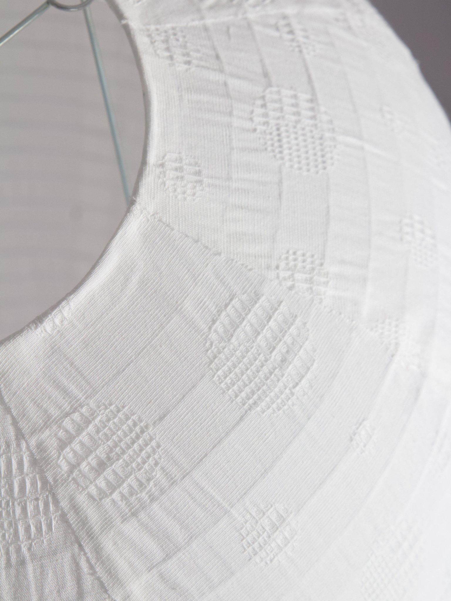 - Material: Vit bomull med subtil väveffekt