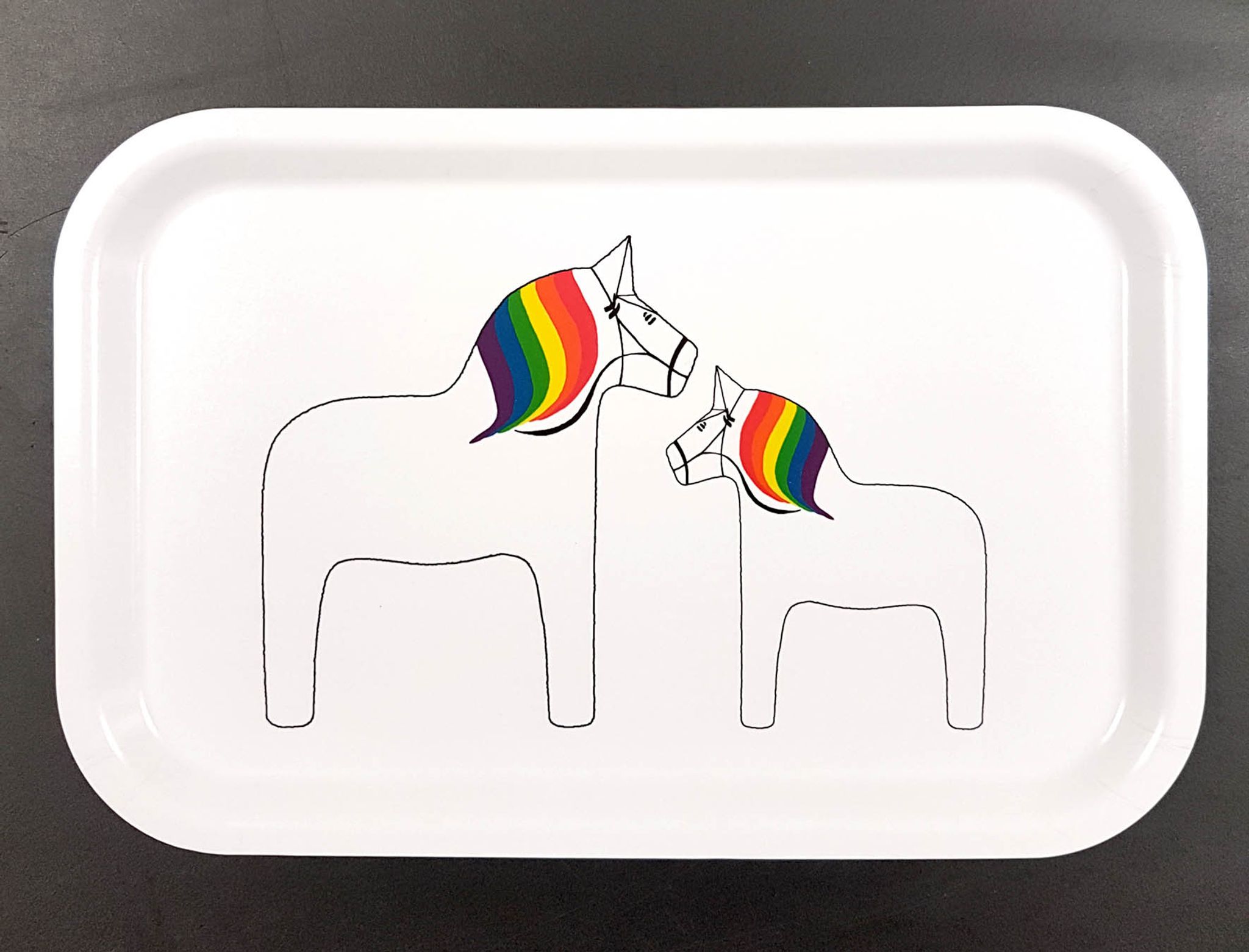 Upptäck den charmiga Pride Horse brickan från Arvidssons Textil, designad av Carola Bengtsson Malmström. Denna unika bricka är tillverkad av högkvalitativ björkfanér och pryds av en färgglad illustration av två hästar med regnbågsfärgad man. Perfekt för att servera snacks eller som en dekorativ detalj i hemmet.