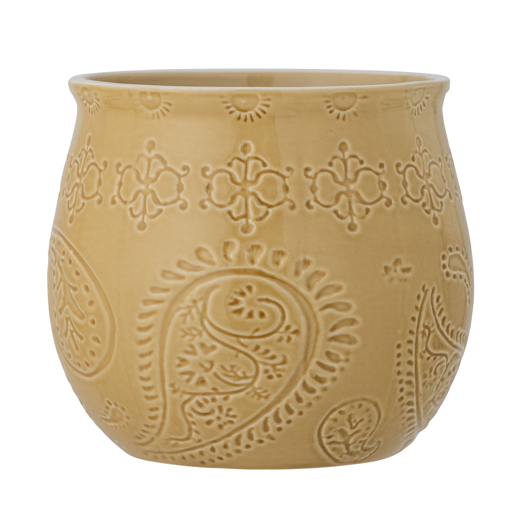 Rani blomkruka i gul stengods, Ø20.5 cm, höjd 18 cm från Bloomingville. En snygg och praktisk blomkruka som håller länge, passar i ditt vardagsrum eller på balkongen och funkar bra.