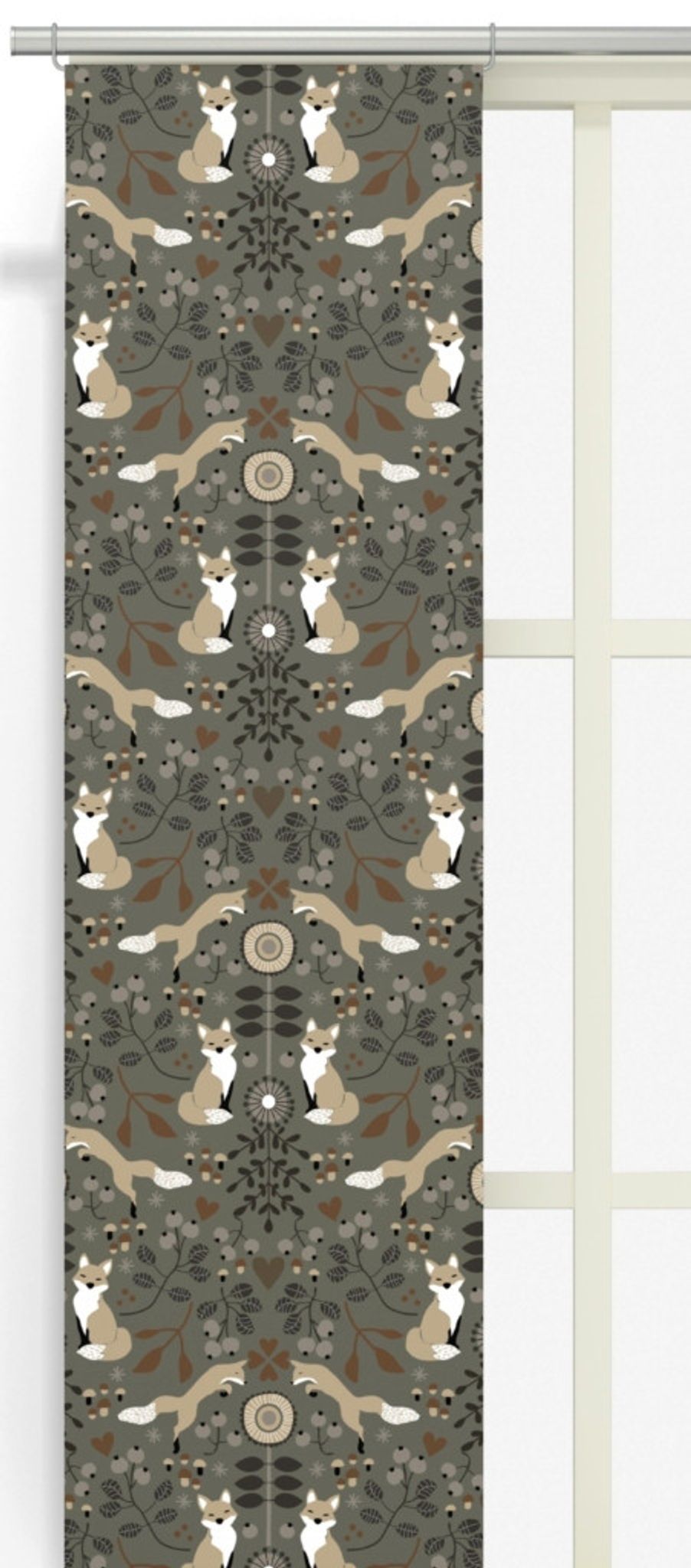 Rävstigen brun panelgardin 2-pack från Arvidssons Textil – en naturnära panelgardin med charmigt mönster av rävar och blommor. Tillverkad i mjuk bomull och levereras som två paneler för enkel uppsättning.
